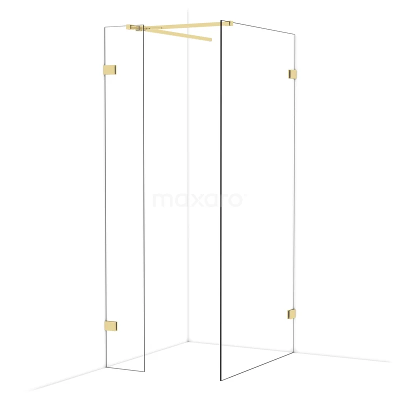 Diamond begehbare Dusche | 100x30 cm Glänzendes Hellgold 2 feste Wände