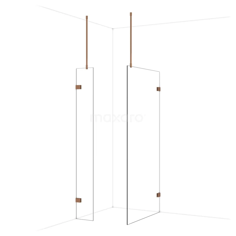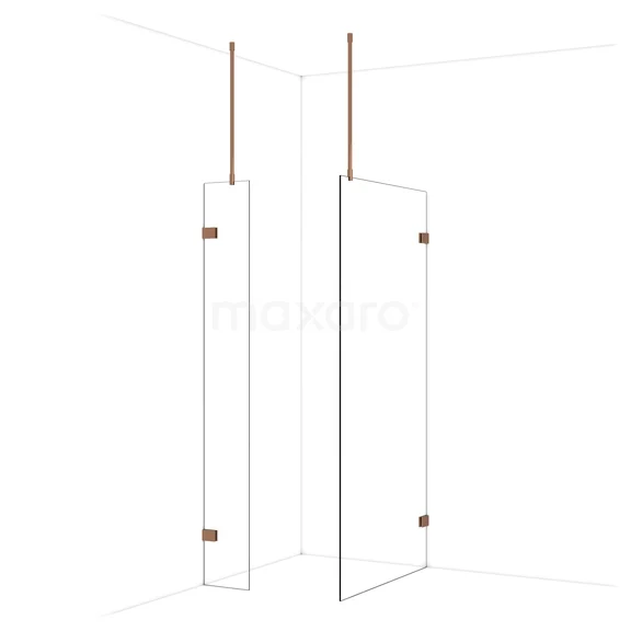 Diamond begehbare Dusche | 100x30 cm Glänzendes Kupfer 2 feste Wände