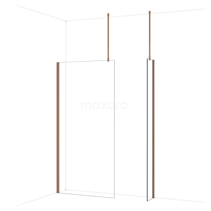 Diamond begehbare Dusche | 100x30 cm Glänzendes Kupfer 2 feste Wände