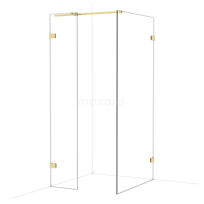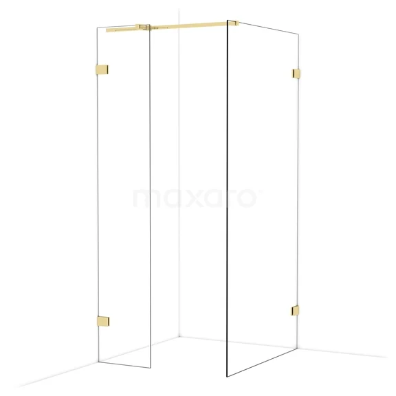 Diamond begehbare Dusche | 100x40 cm Glänzendes Hellgold 2 feste Wände