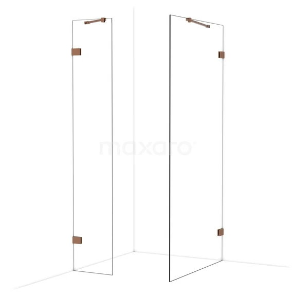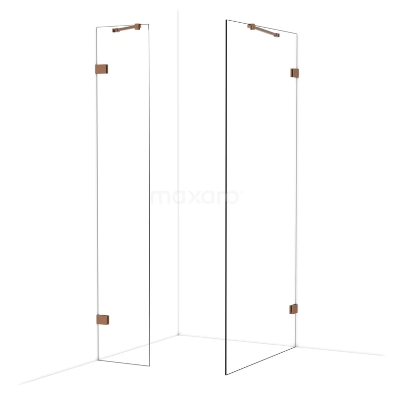 Diamond begehbare Dusche | 100x40 cm Glänzendes Kupfer 2 feste Wände