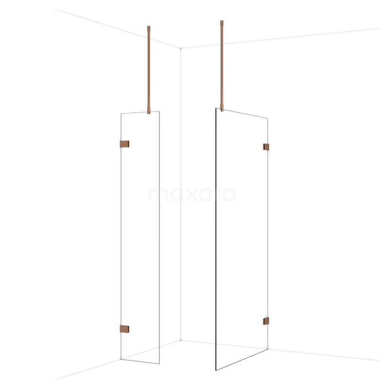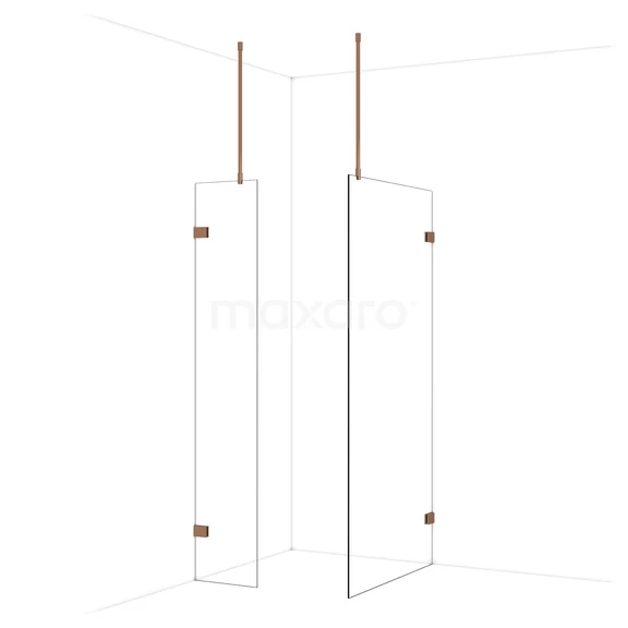 Diamond begehbare Dusche | 100x40 cm Glänzendes Kupfer 2 feste Wände
