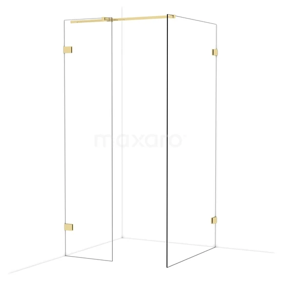 Diamond begehbare Dusche | 100x50 cm Glänzendes Hellgold 2 feste Wände