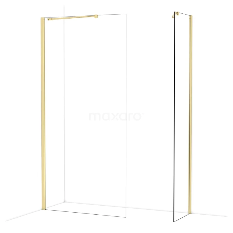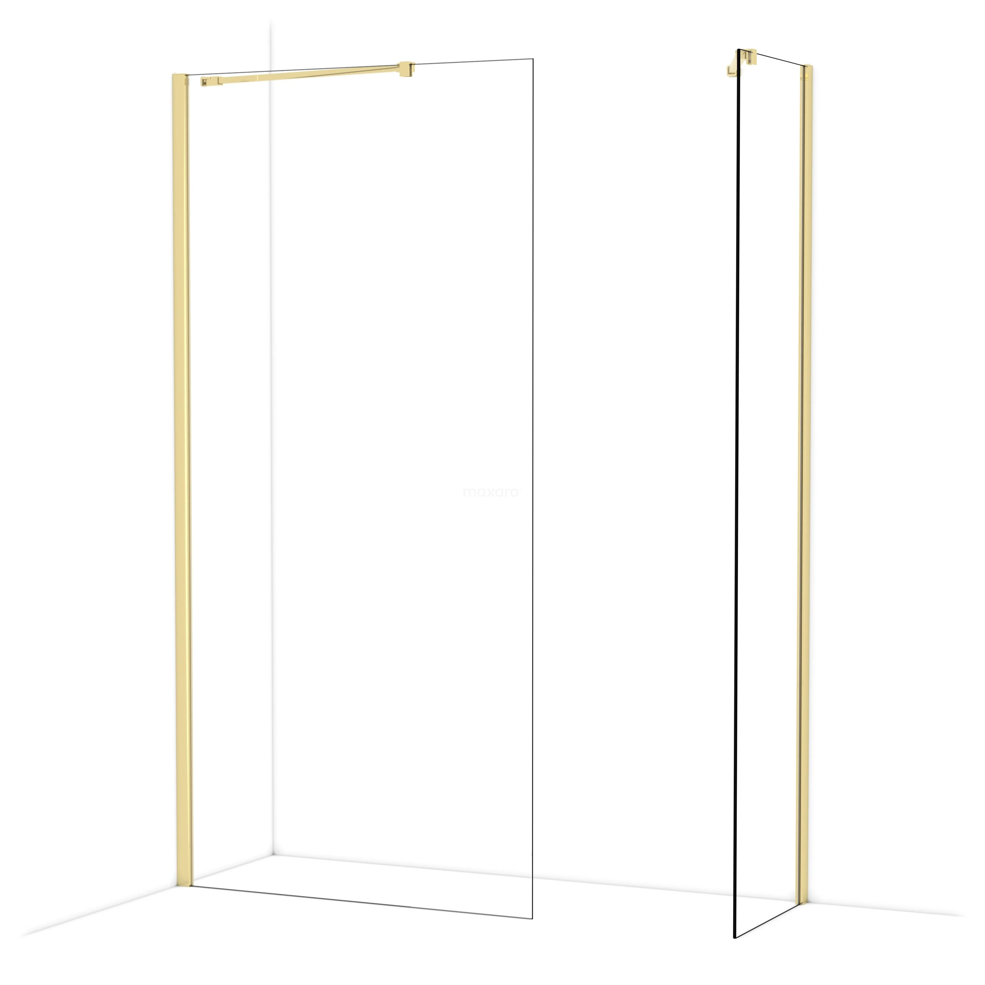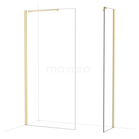 Diamond begehbare Dusche | 100x50 cm Glänzendes Hellgold 2 feste Wände