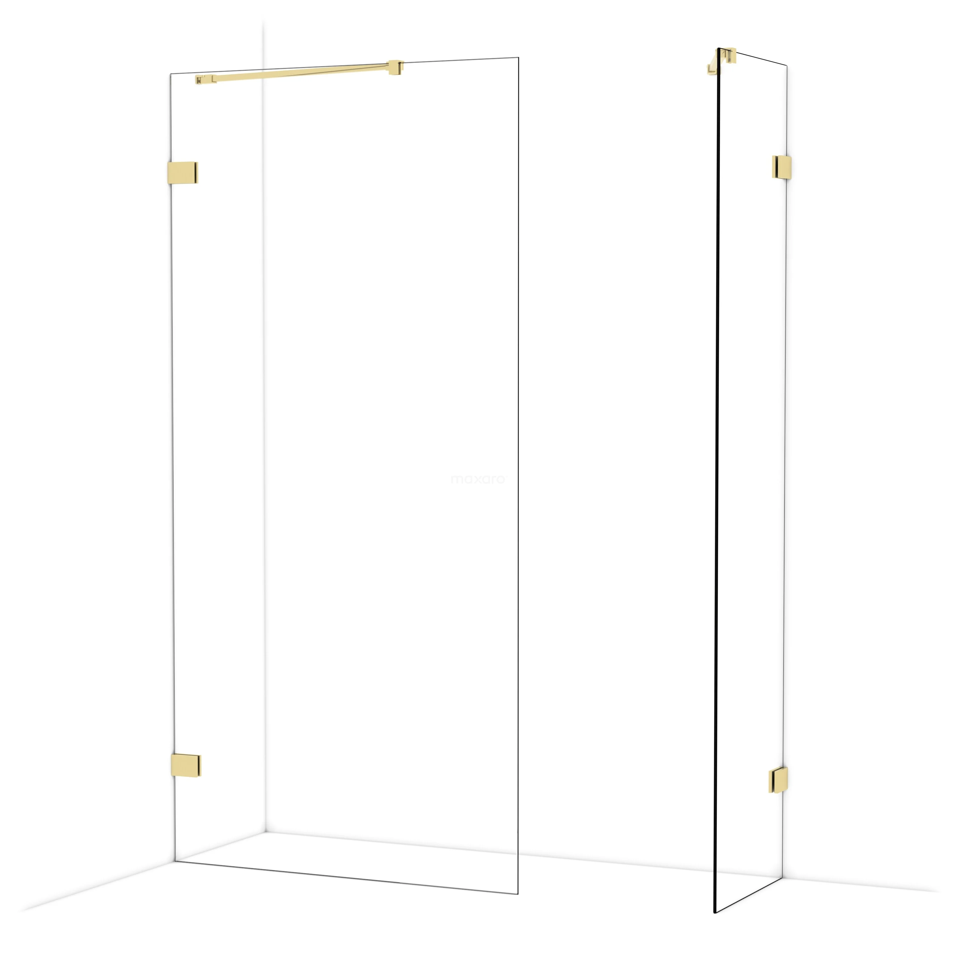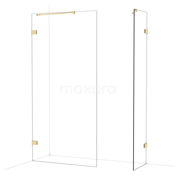 Diamond begehbare Dusche | 100x50 cm Glänzendes Hellgold 2 feste Wände