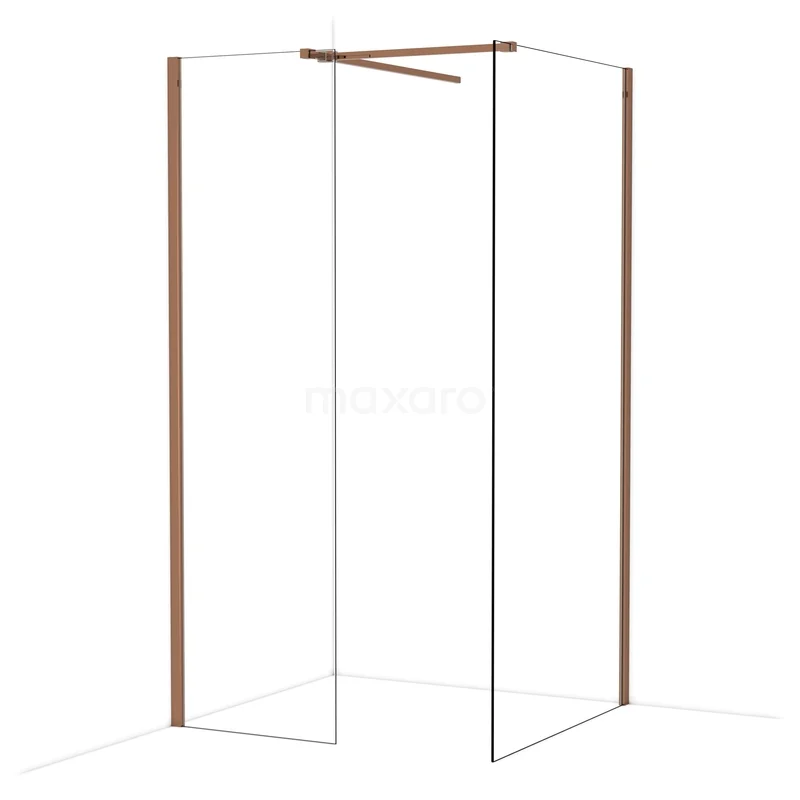 Diamond begehbare Dusche | 100x60 cm Glänzendes Kupfer 2 feste Wände