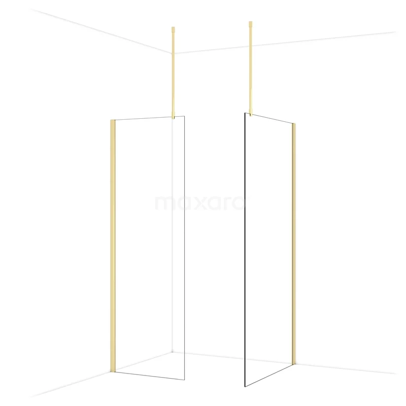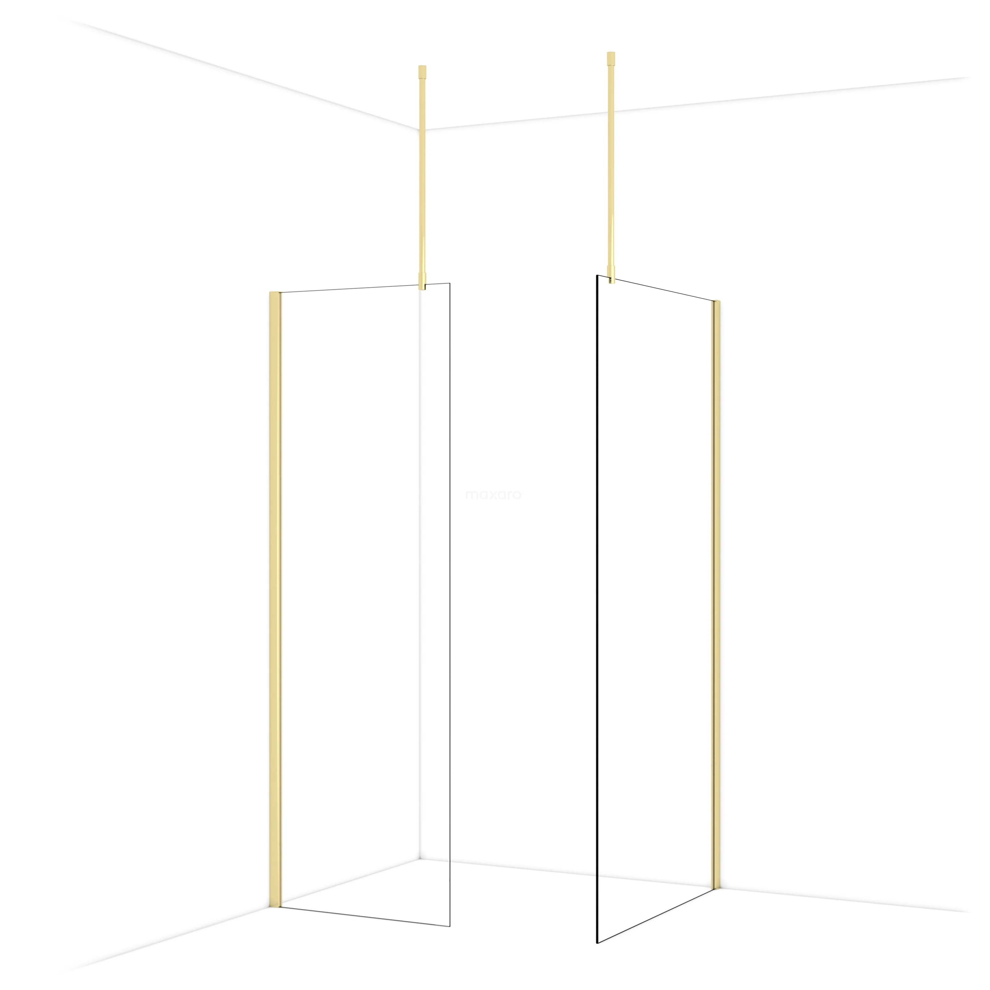 Diamond begehbare Dusche | 100x70 cm Glänzendes Hellgold 2 feste Wände