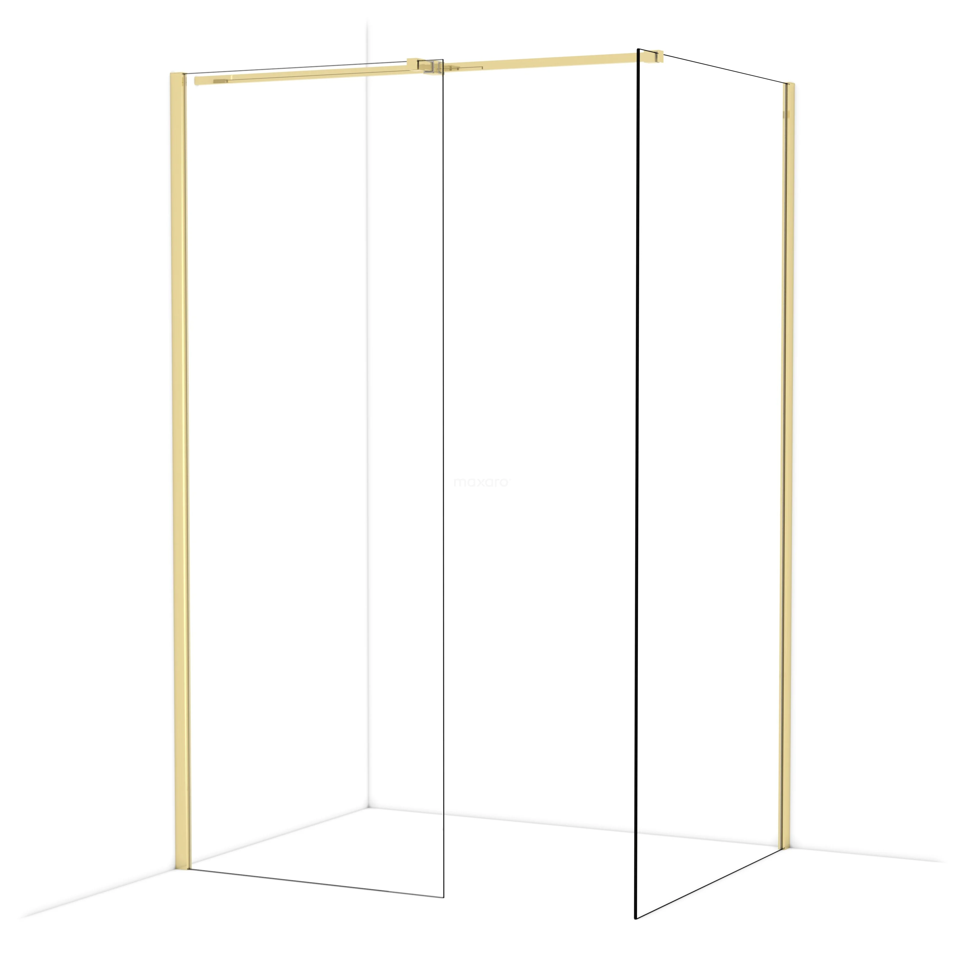 Diamond begehbare Dusche | 100x80 cm Glänzendes Hellgold 2 feste Wände