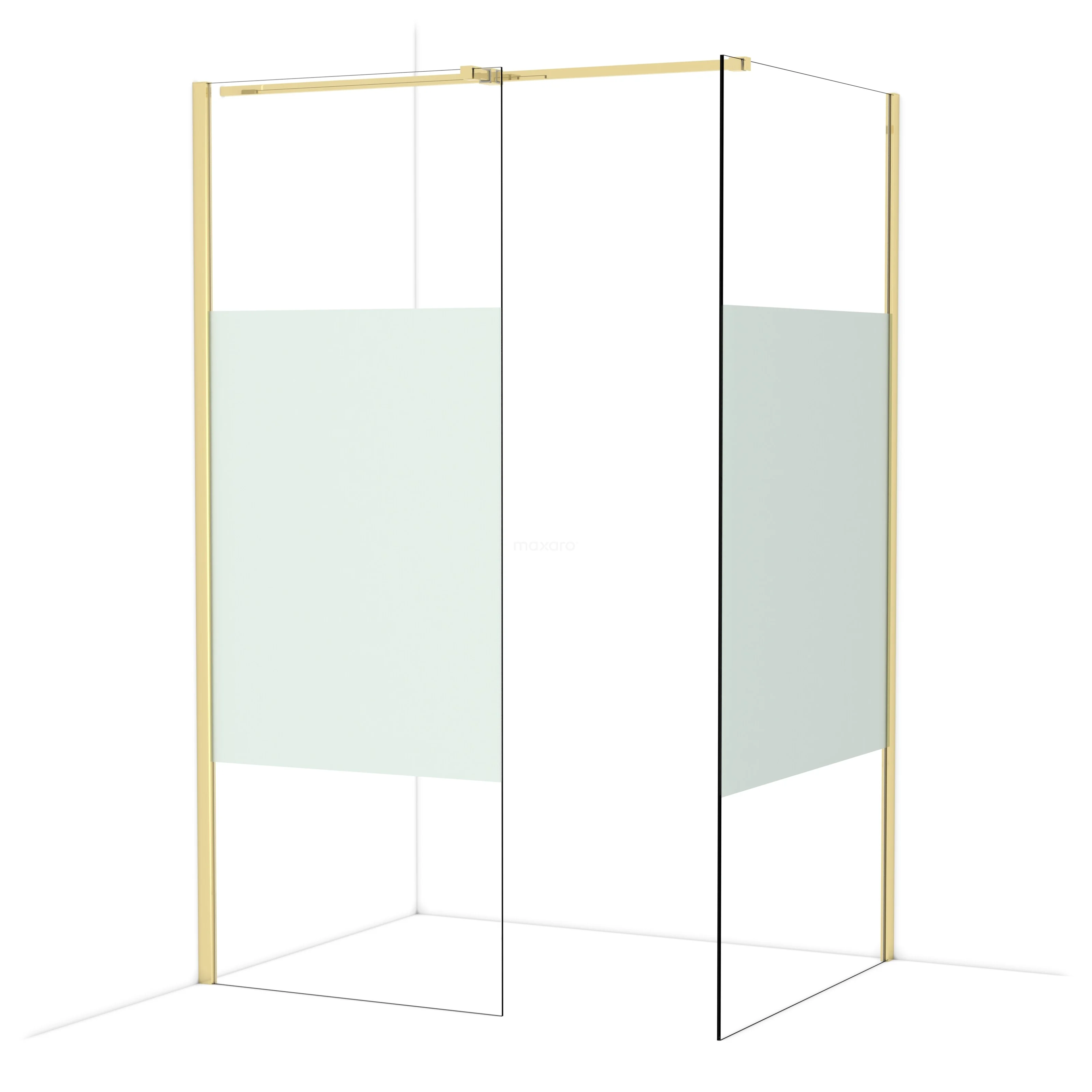 Diamond begehbare Dusche | 100x80 cm Glänzendes Hellgold 2 feste Wände
