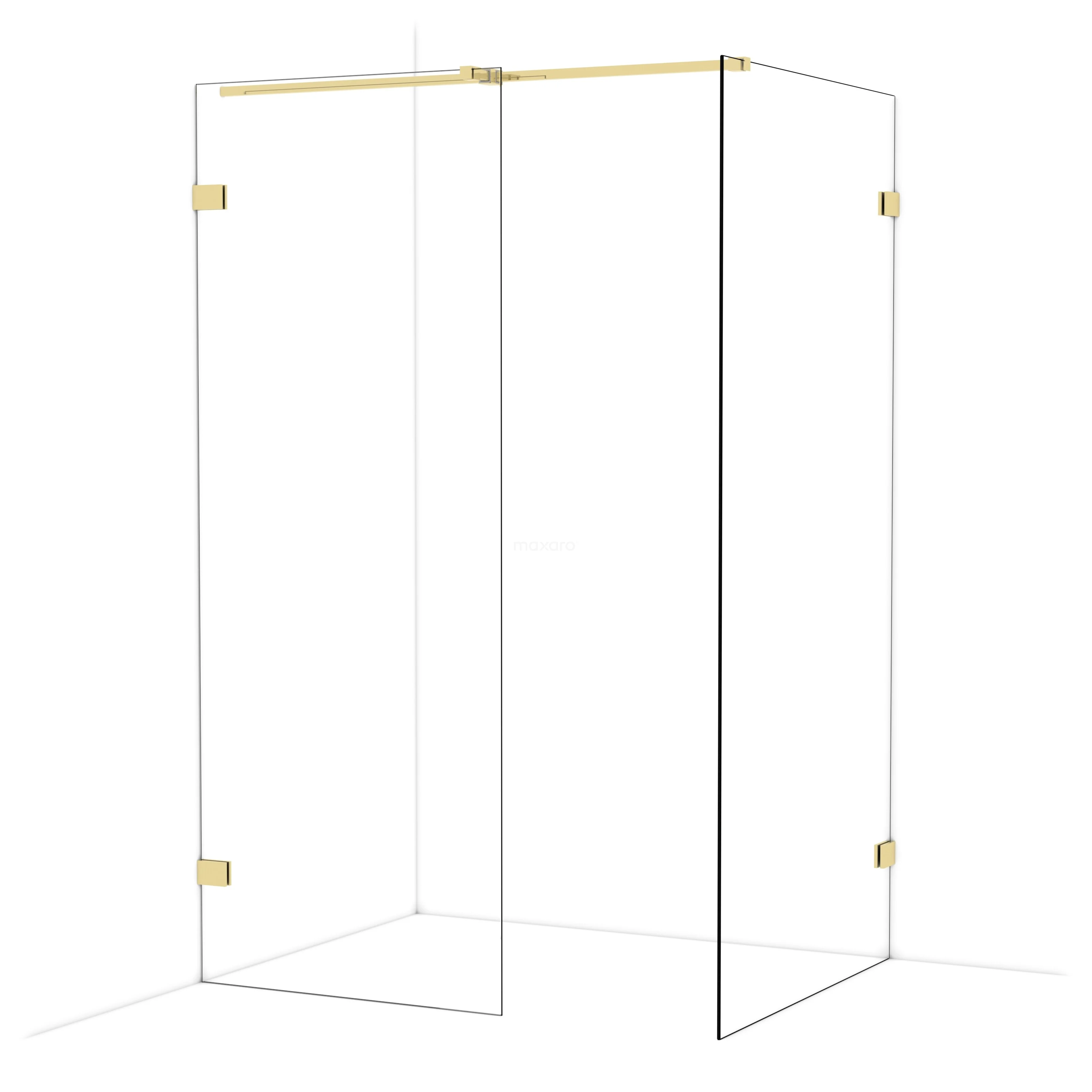 Diamond begehbare Dusche | 100x80 cm Glänzendes Hellgold 2 feste Wände