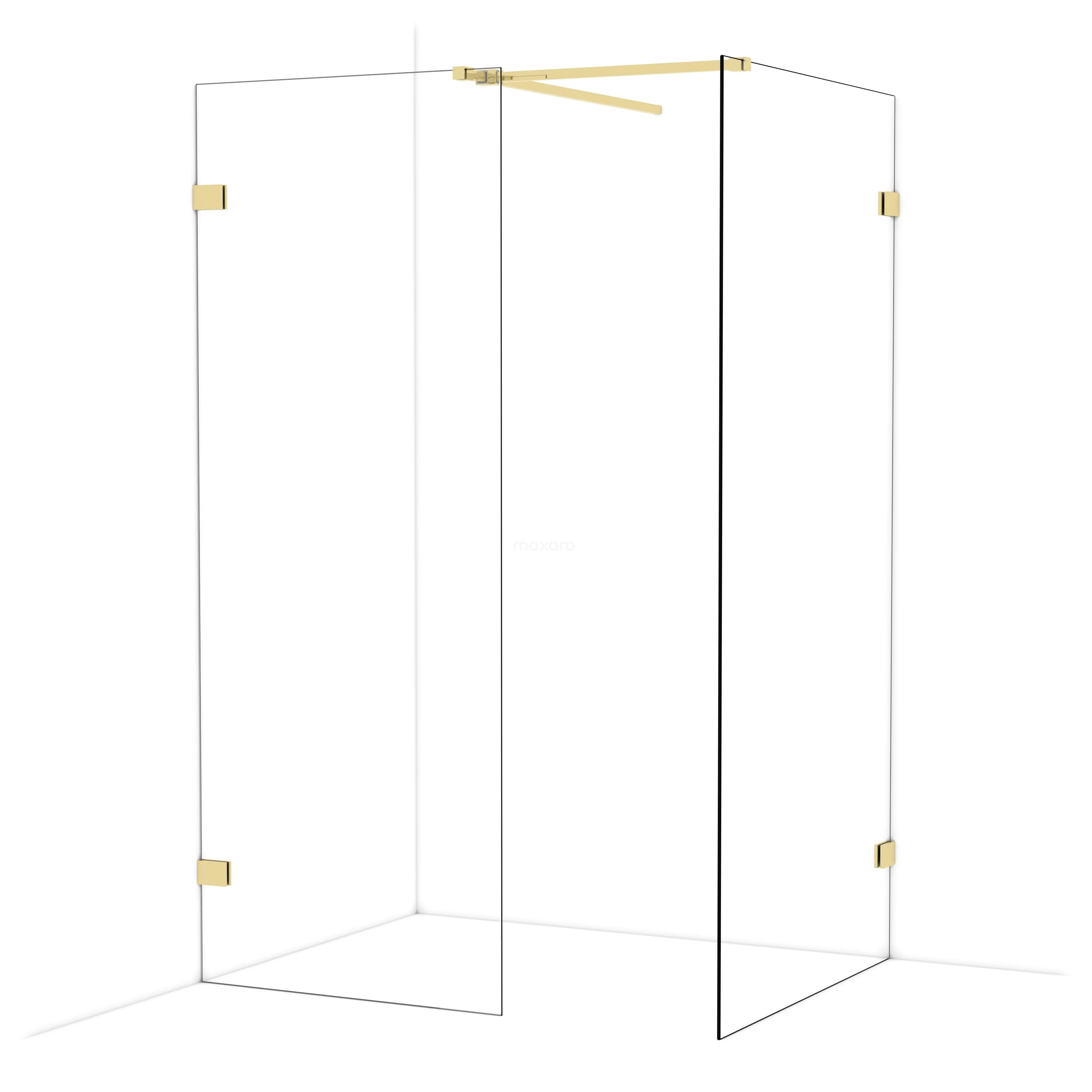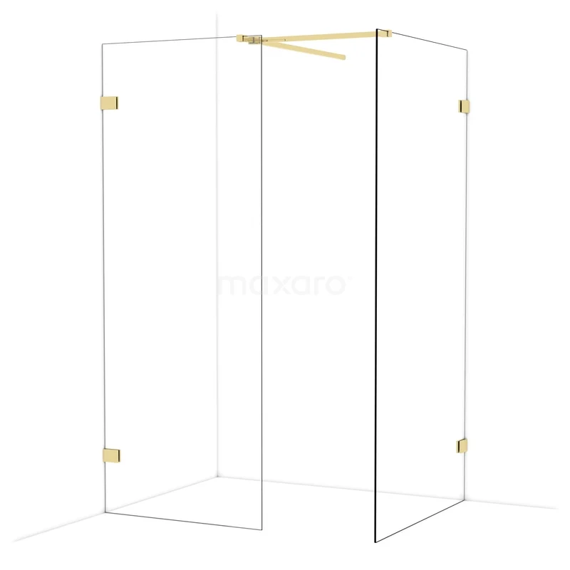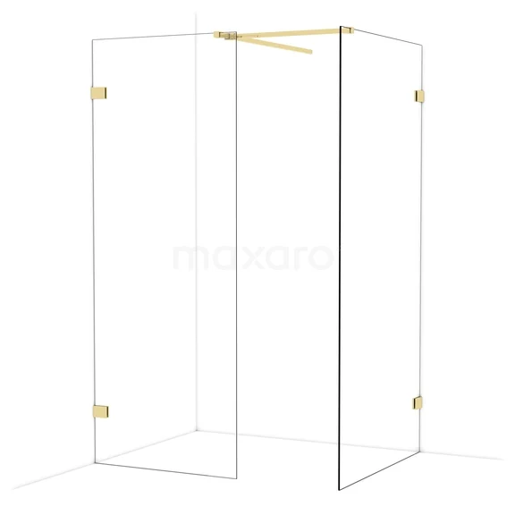 Diamond begehbare Dusche | 100x80 cm Glänzendes Hellgold 2 feste Wände