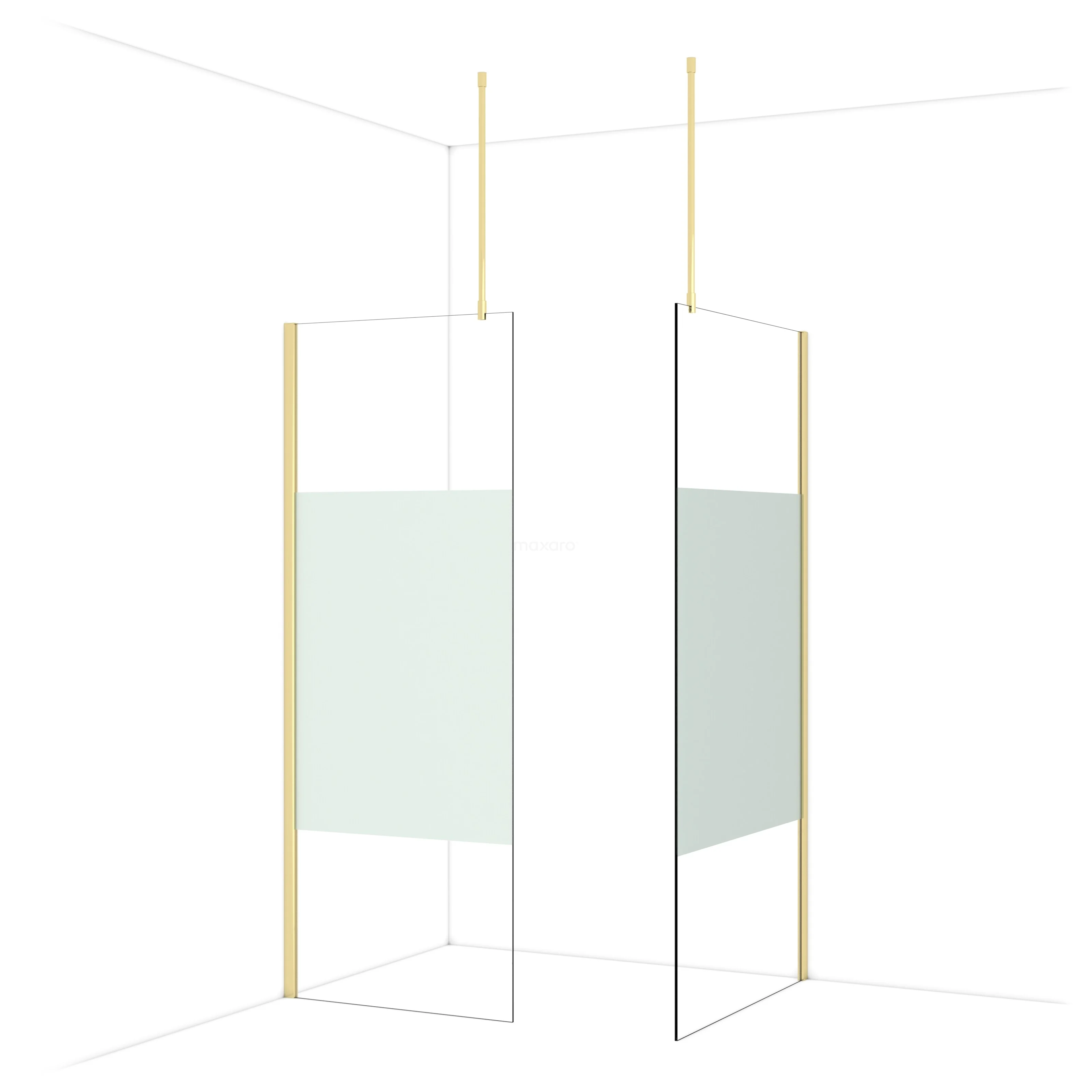 Diamond begehbare Dusche | 100x80 cm Glänzendes Hellgold 2 feste Wände