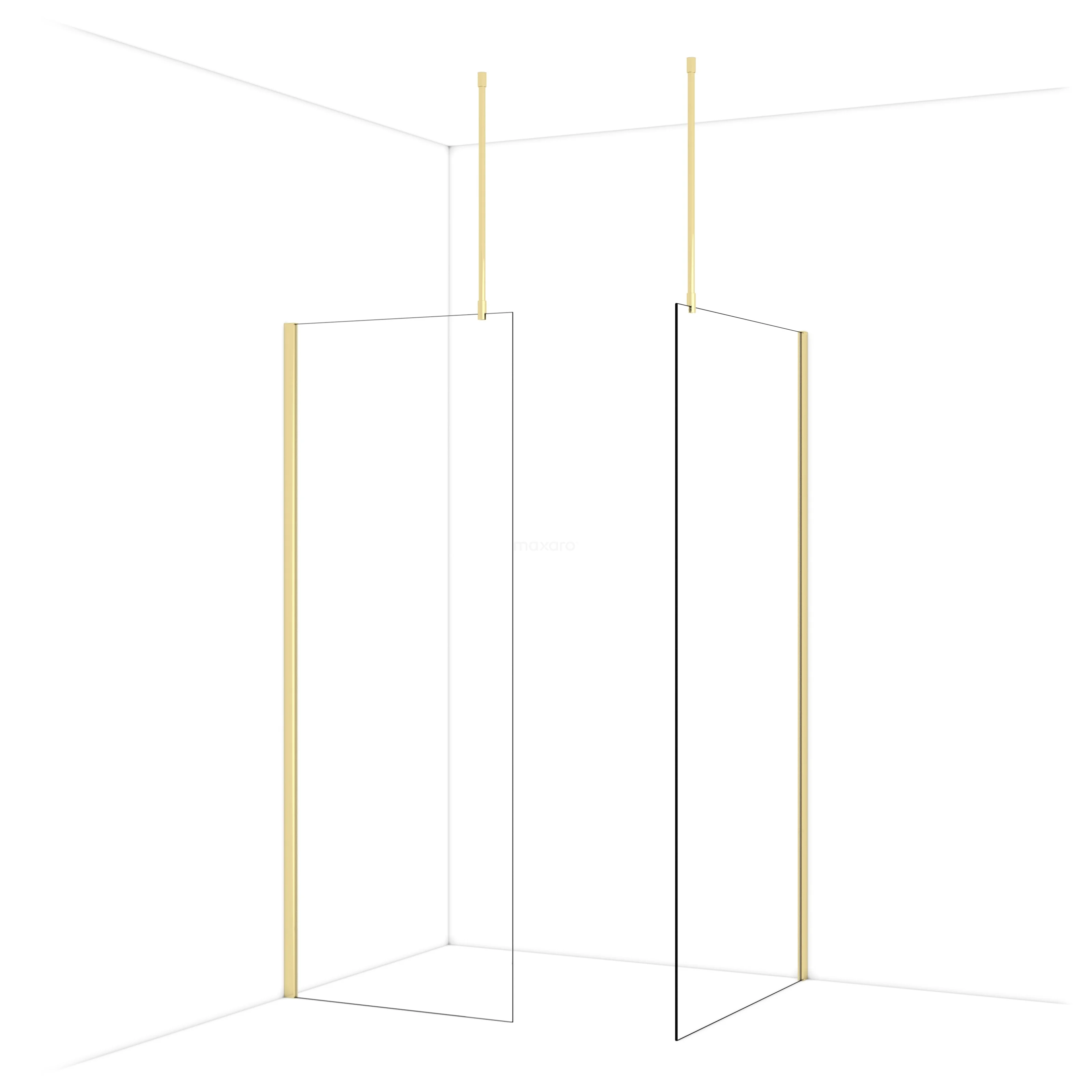 Diamond begehbare Dusche | 100x80 cm Glänzendes Hellgold 2 feste Wände