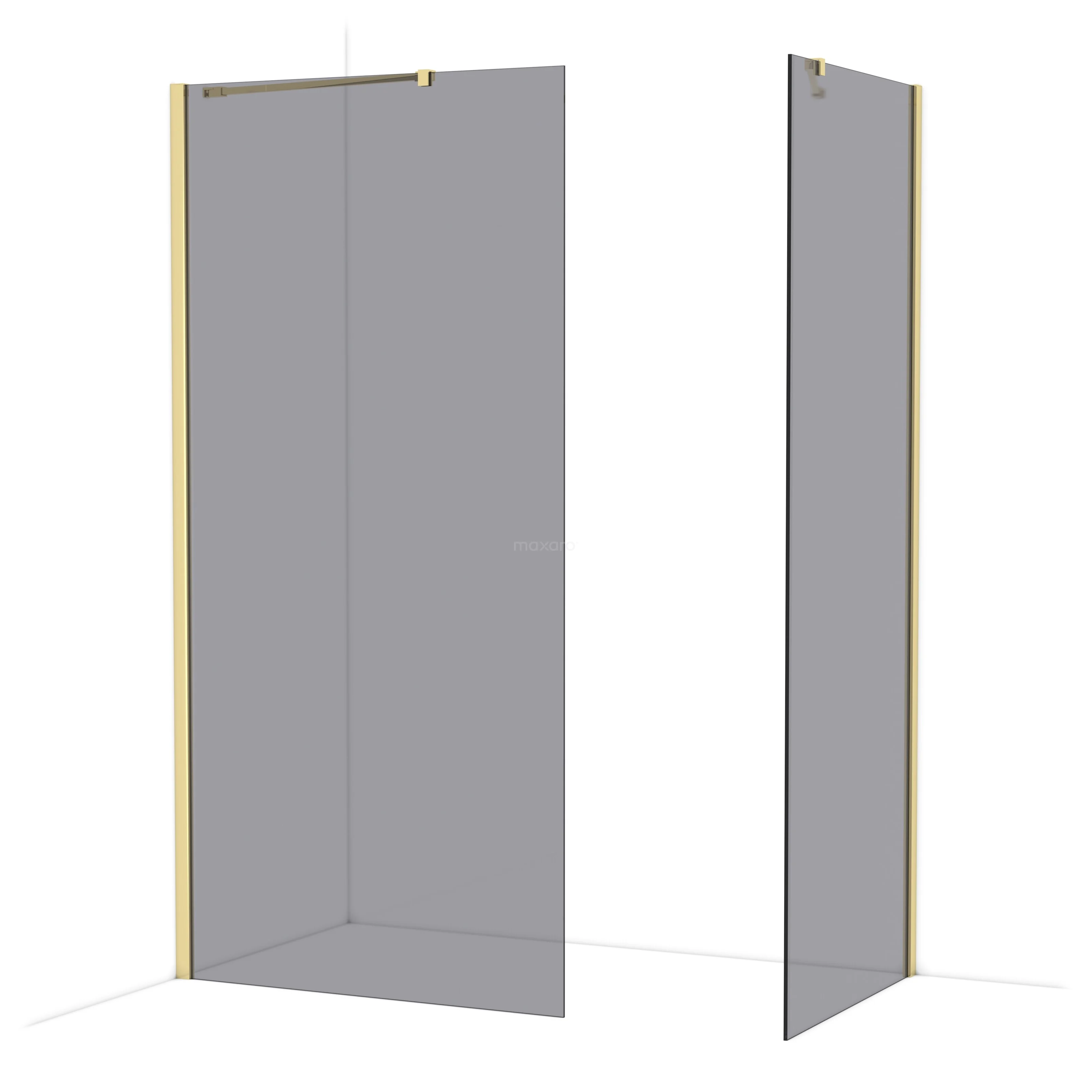 Diamond begehbare Dusche | 100x80 cm Glänzendes Hellgold 2 feste Wände