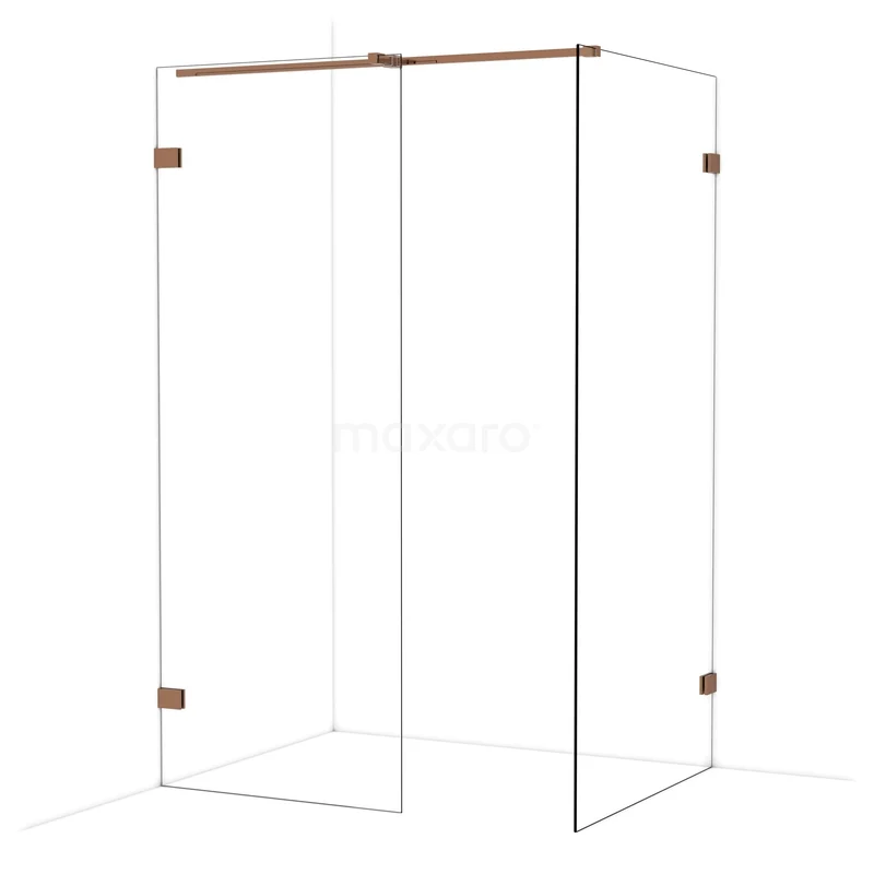Diamond begehbare Dusche | 100x80 cm Glänzendes Kupfer 2 feste Wände