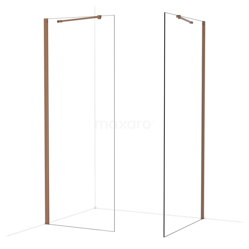 Diamond begehbare Dusche | 100x80 cm Glänzendes Kupfer 2 feste Wände