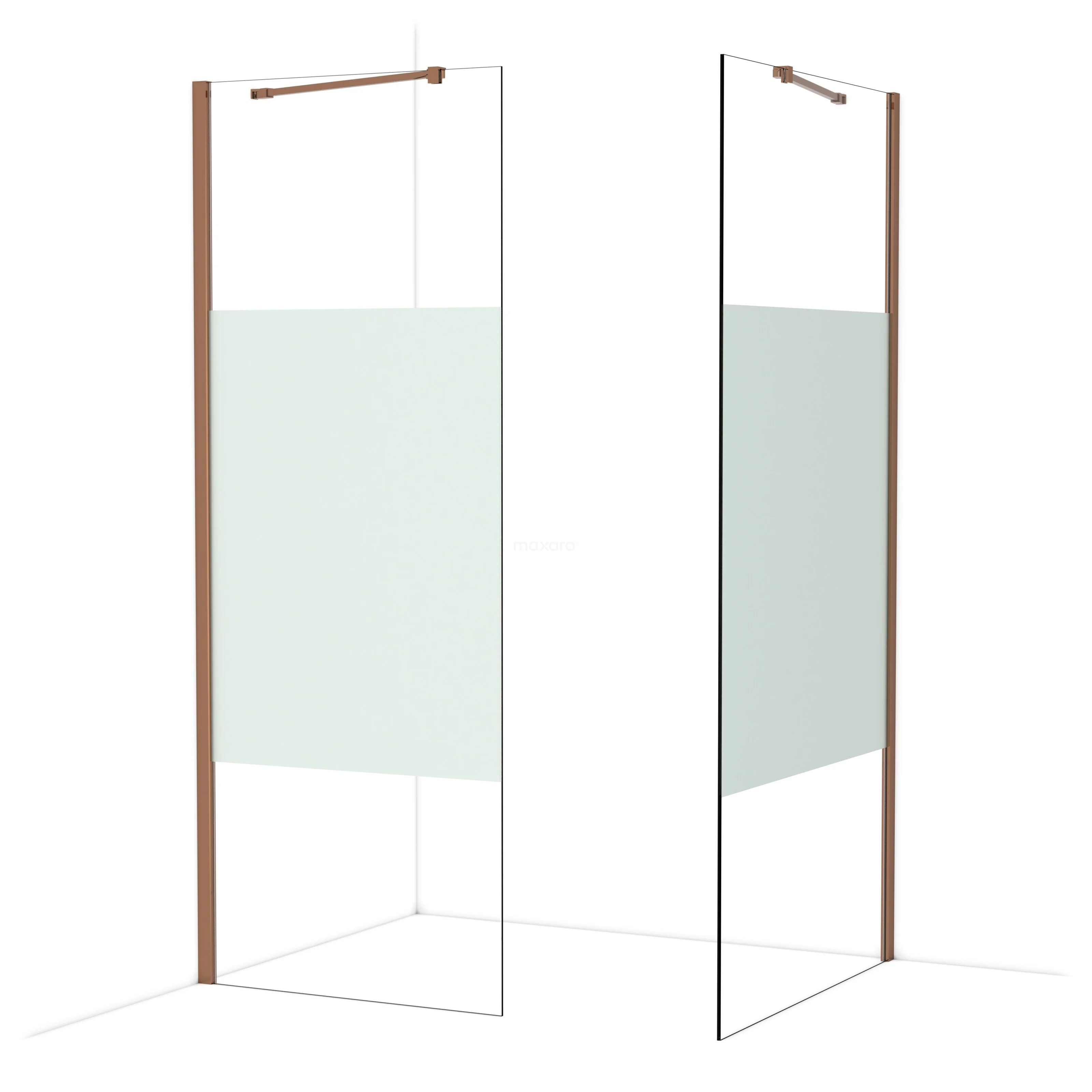 In der stilvollen begehbaren Dusche Diamond mit den Maßen 100x80 cm können Sie jeden Tag herrliche Duschsitzungen genießen. Sie hat ein auffälliges Design aus glänzendem Kupfer und verfügt über Klarglas mit Mattstreifen für mehr Privatsphäre.