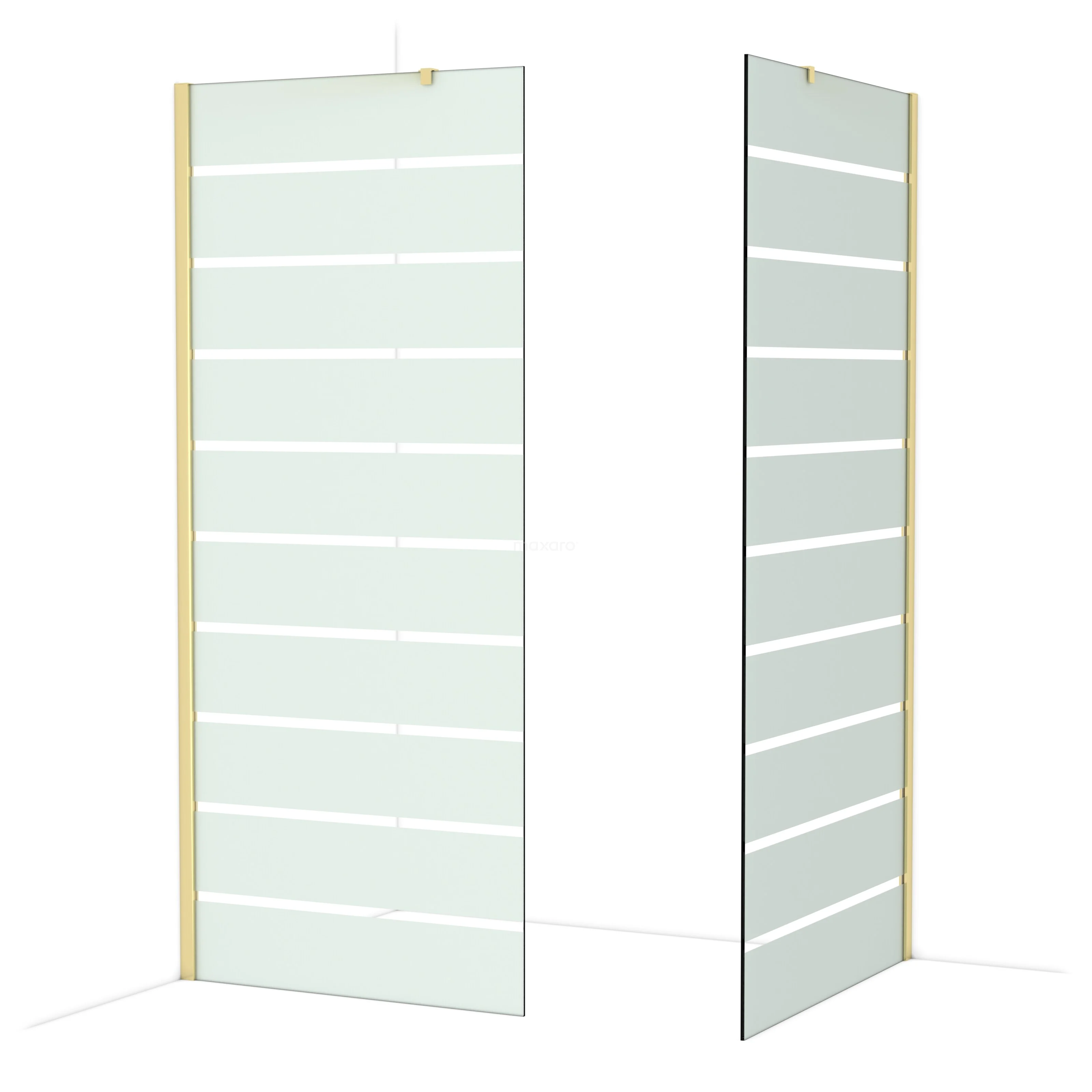 In der stilvollen begehbaren Dusche Diamond mit den Maßen 100x90 cm können Sie jeden Tag herrliche Duschsitzungen genießen. Sie hat ein raffiniertes und luxuriöses Design in glänzendem Hellgold und verfügt über Klarglas mit matten Streifen für mehr Privatsphäre.