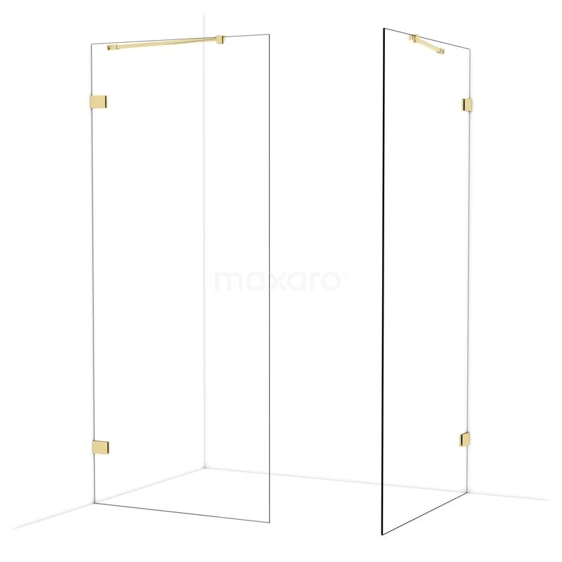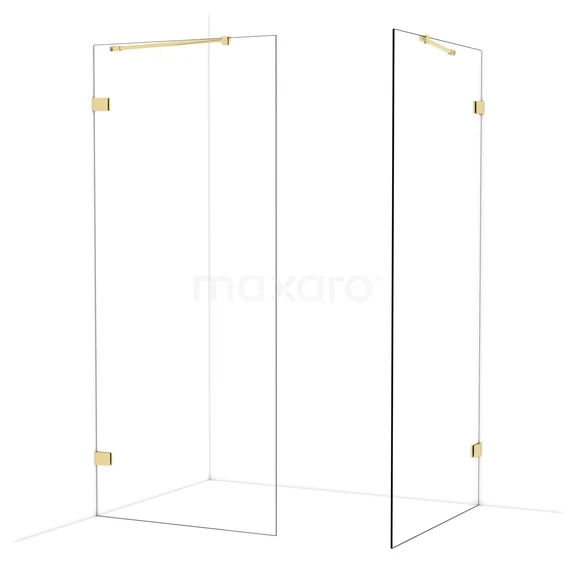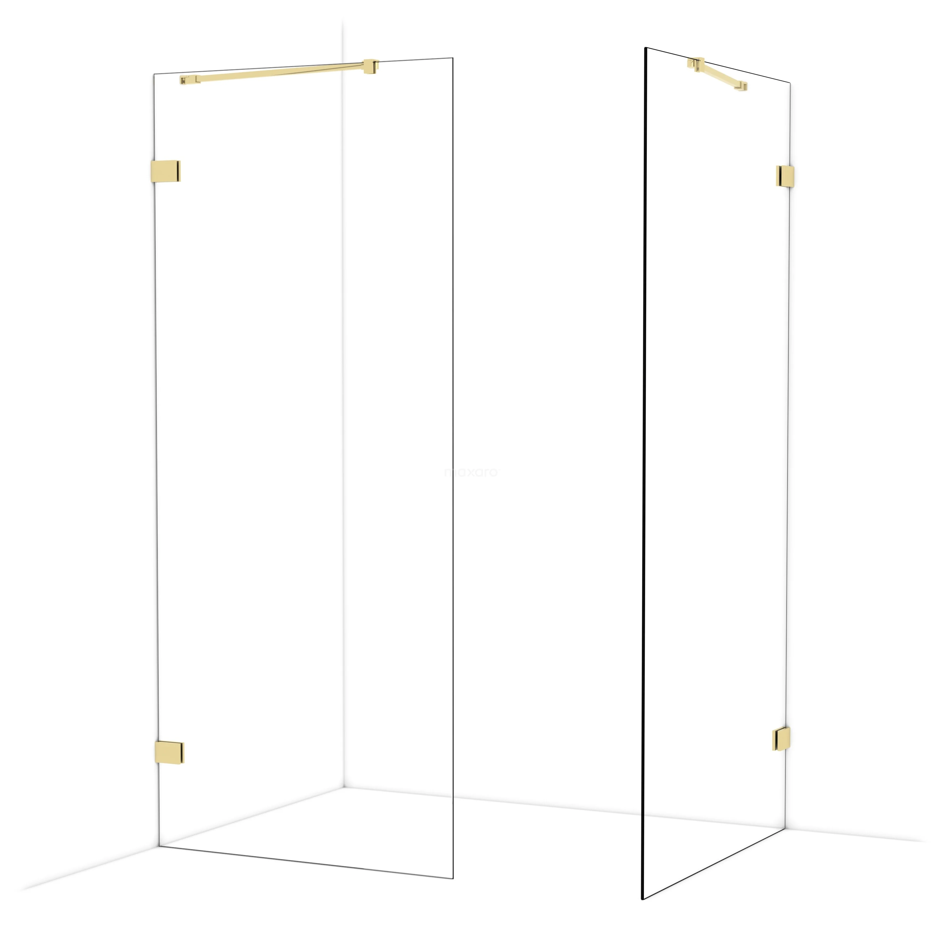 Diamond begehbare Dusche | 100x90 cm Glänzendes Hellgold 2 feste Wände