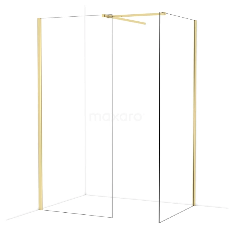 Diamond begehbare Dusche | 100x90 cm Glänzendes Hellgold 2 feste Wände
