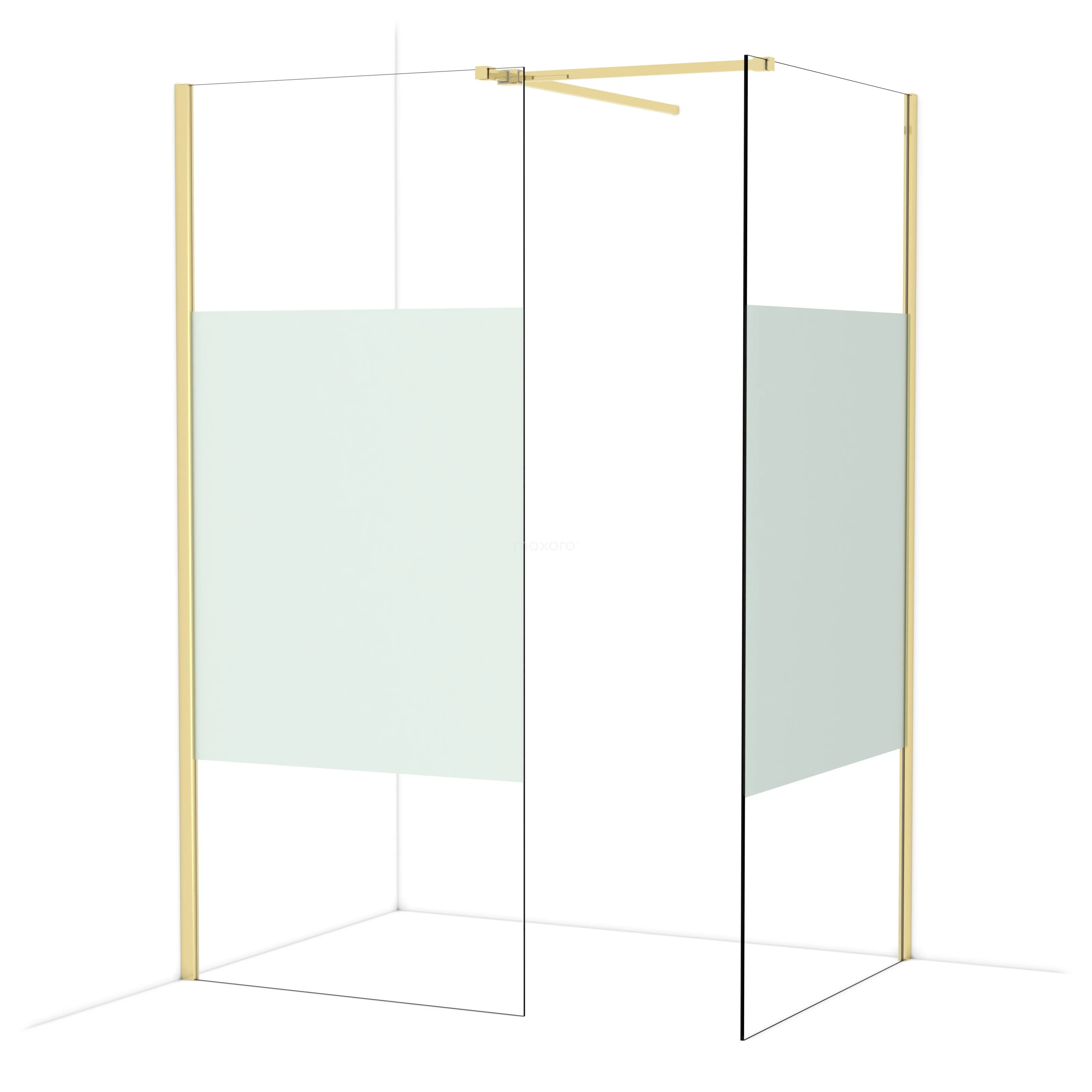 Diamond begehbare Dusche | 100x90 cm Glänzendes Hellgold 2 feste Wände