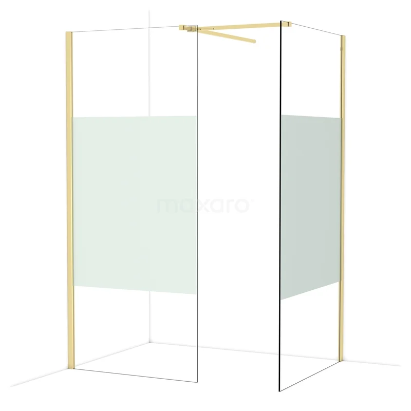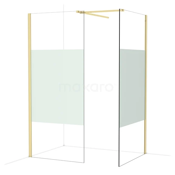 In der stilvollen begehbaren Dusche Diamond mit den Maßen 100x90 cm können Sie jeden Tag herrliche Duschsitzungen genießen. Sie hat ein raffiniertes und luxuriöses Design in glänzendem Hellgold und verfügt über Klarglas mit mattem Streifen für mehr Privatsphäre.