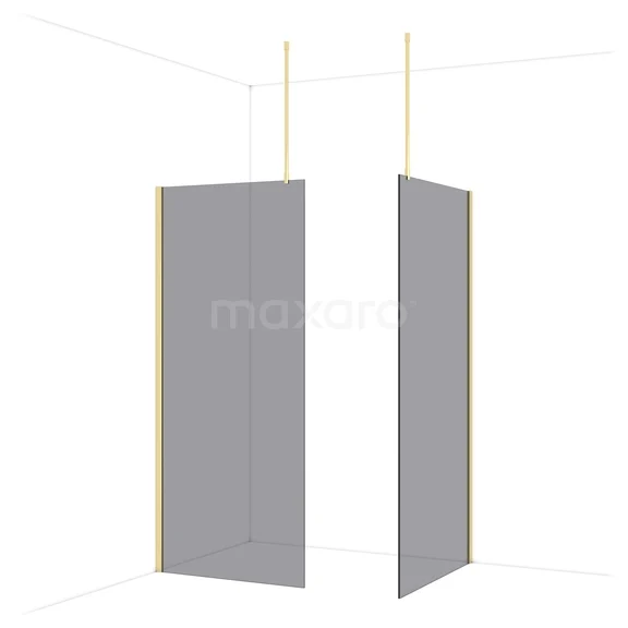 Diamond begehbare Dusche | 100x90 cm Glänzendes Hellgold 2 feste Wände