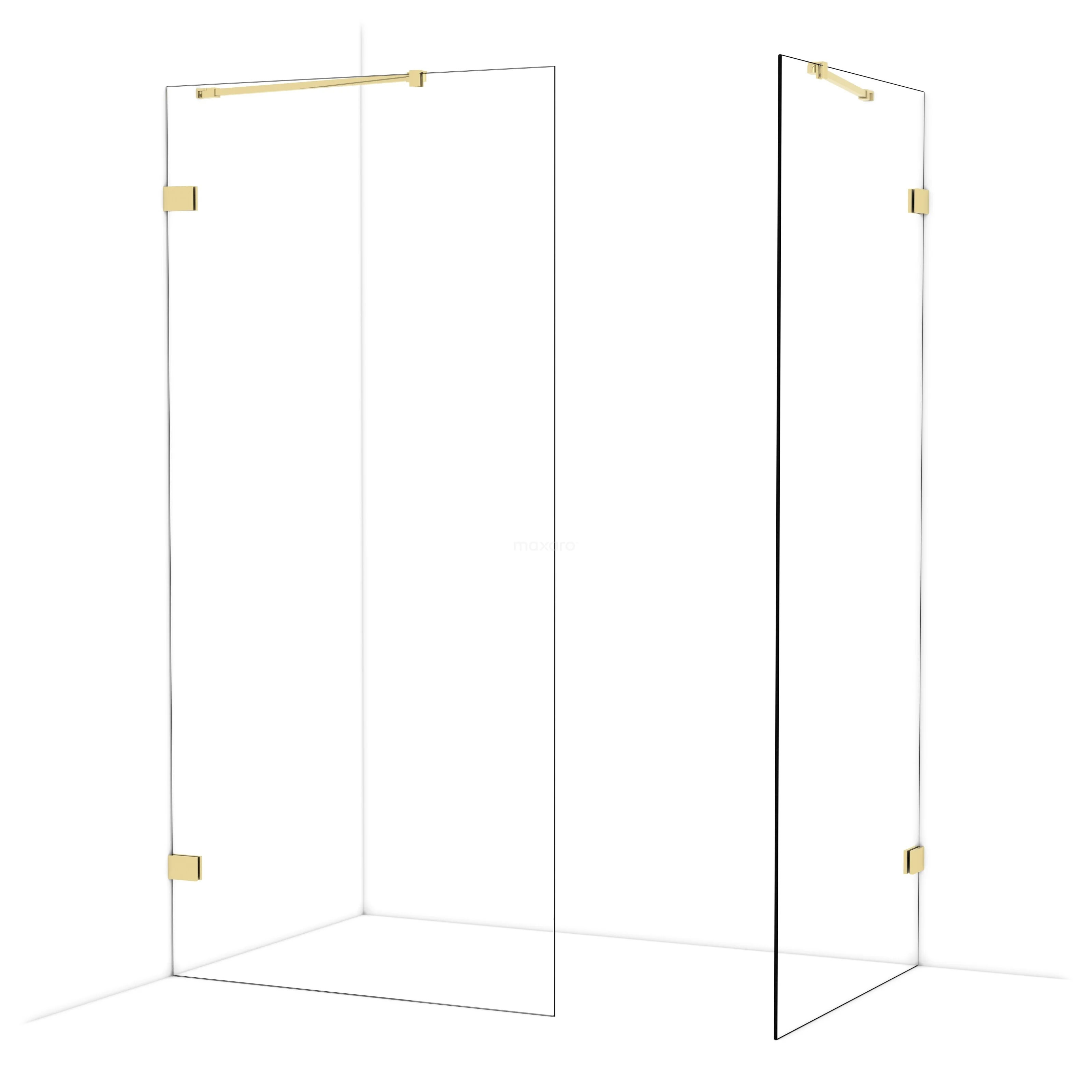 Diamond begehbare Dusche | 100x90 cm Glänzendes Hellgold 2 feste Wände
