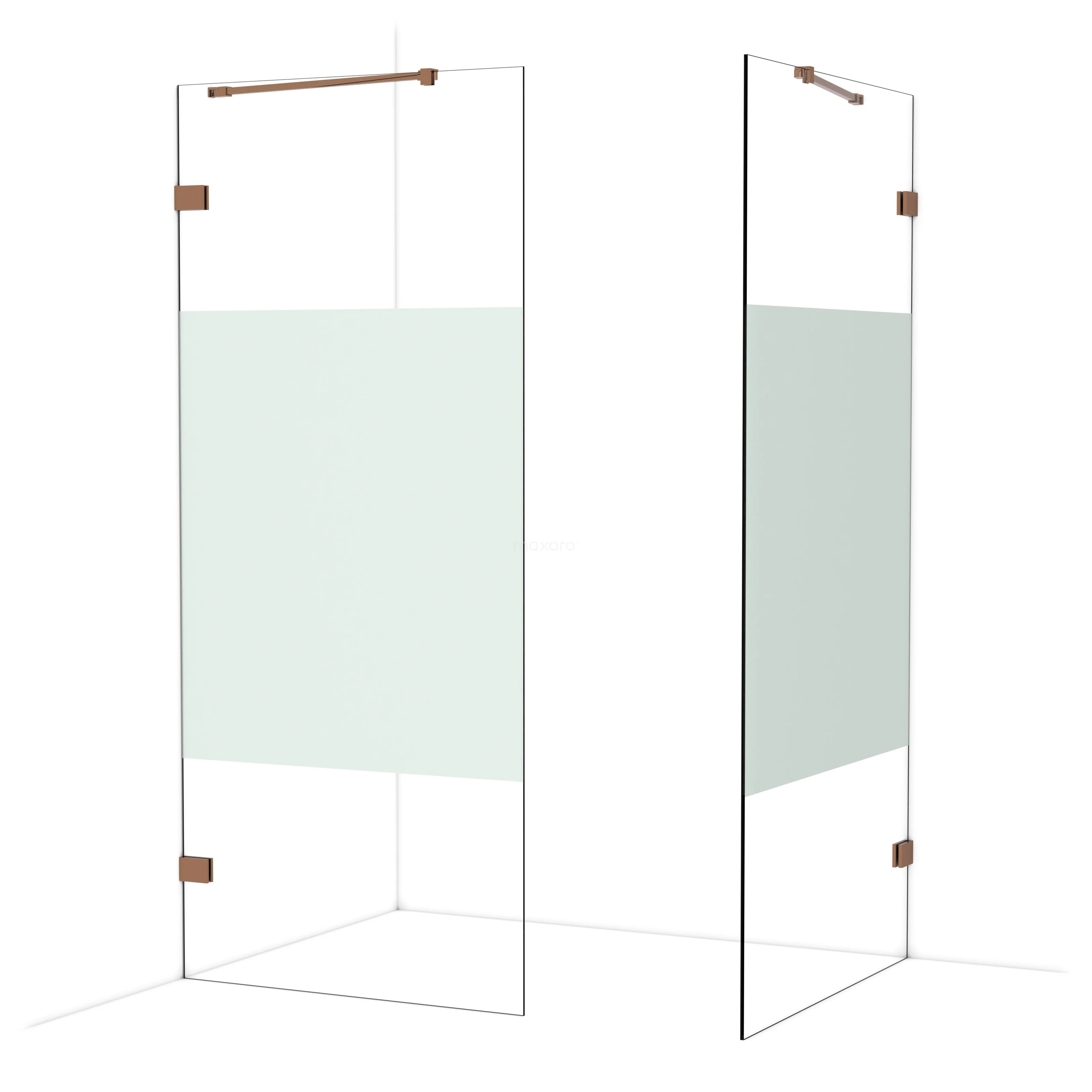 In der stilvollen begehbaren Dusche Diamond mit den Maßen 100x90 cm können Sie jeden Tag herrliche Duschsitzungen genießen. Sie hat ein auffälliges Design aus glänzendem Kupfer und verfügt über Klarglas mit Mattstreifen für mehr Privatsphäre.