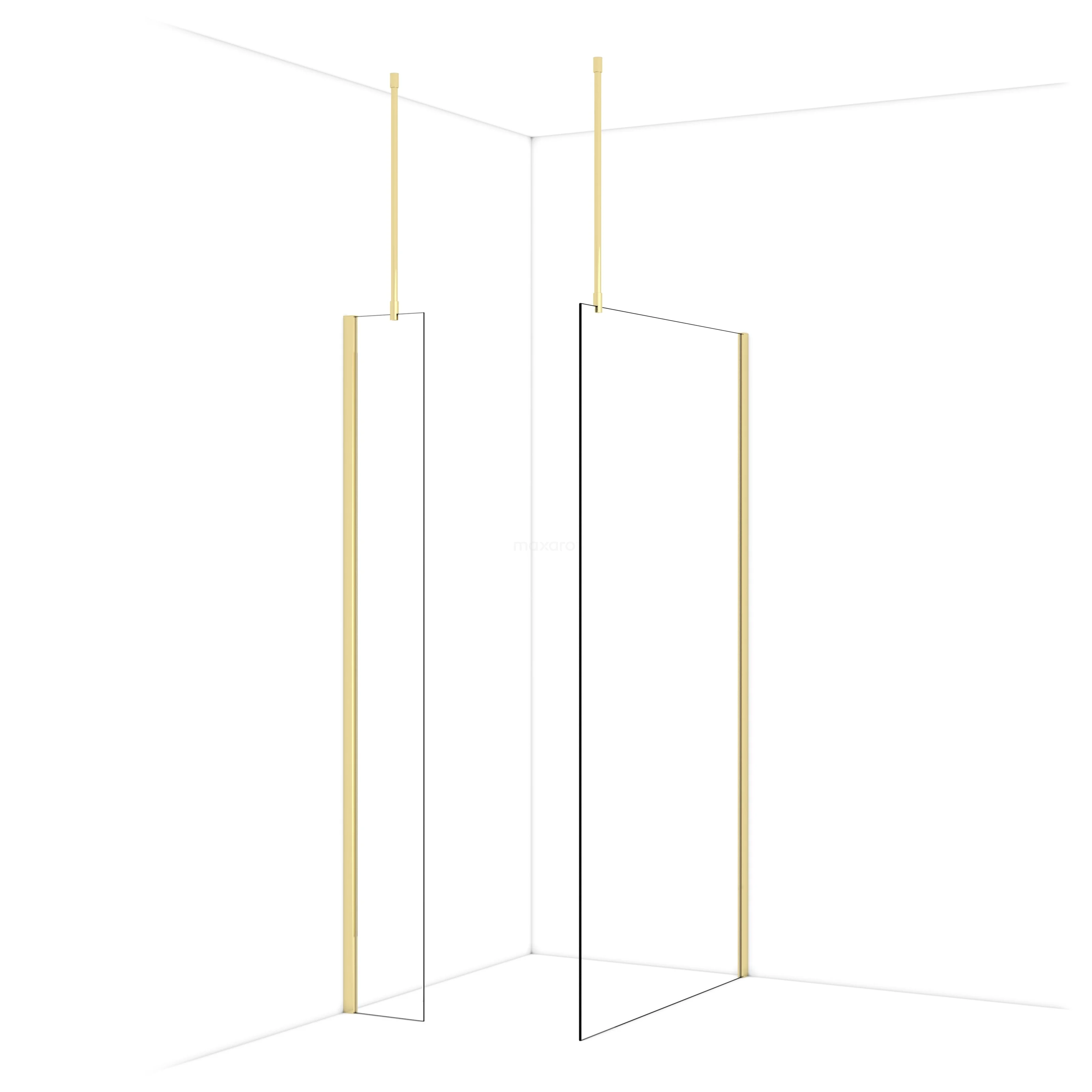 Diamond begehbare Dusche | 110x30 cm Glänzendes Hellgold 2 feste Wände