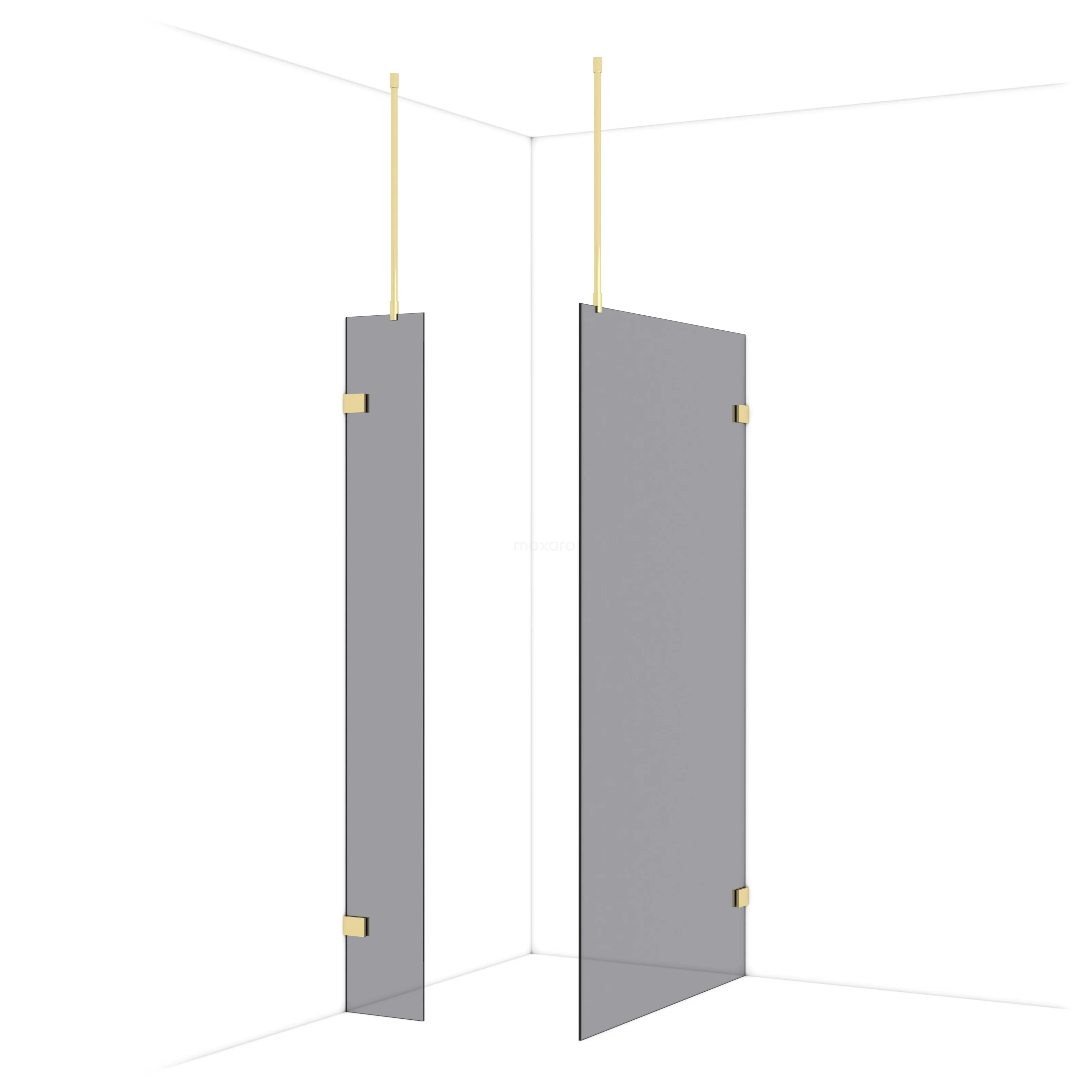 Diamond begehbare Dusche | 110x30 cm Glänzendes Hellgold 2 feste Wände