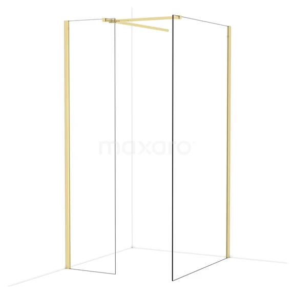 Diamond begehbare Dusche | 110x50 cm Glänzendes Hellgold 2 feste Wände