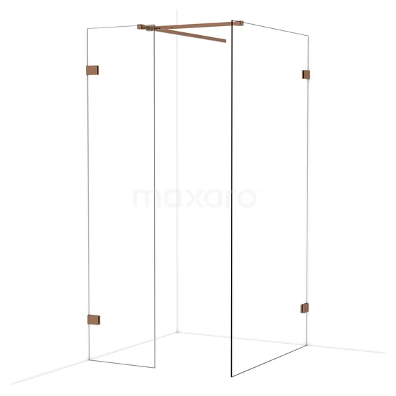 Diamond begehbare Dusche | 110x50 cm Glänzendes Kupfer 2 feste Wände