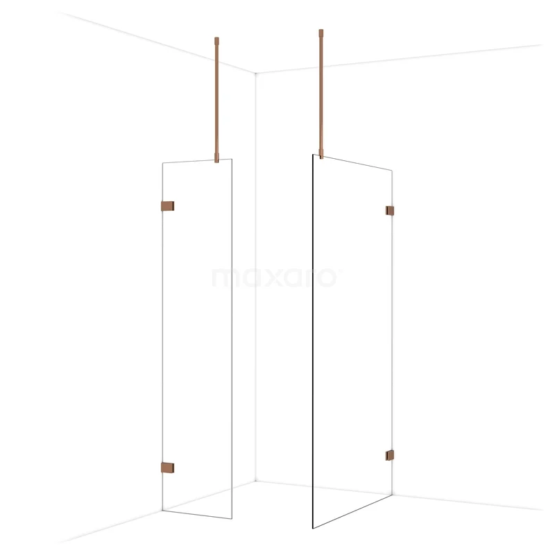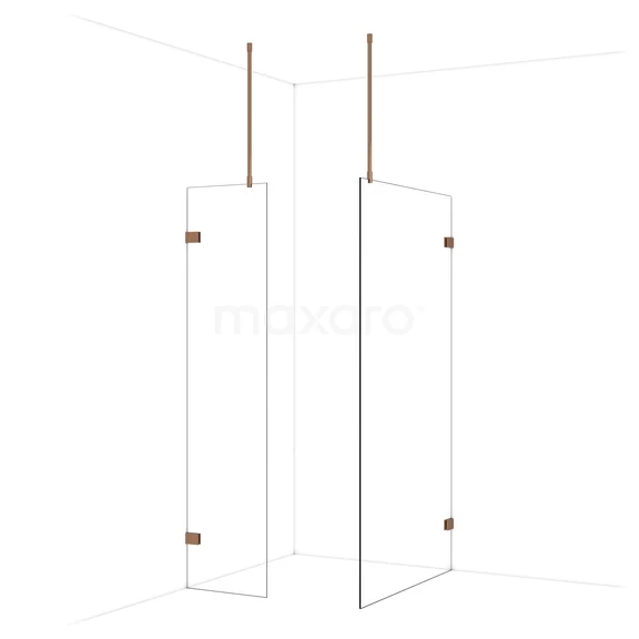 Diamond begehbare Dusche | 110x50 cm Glänzendes Kupfer 2 feste Wände