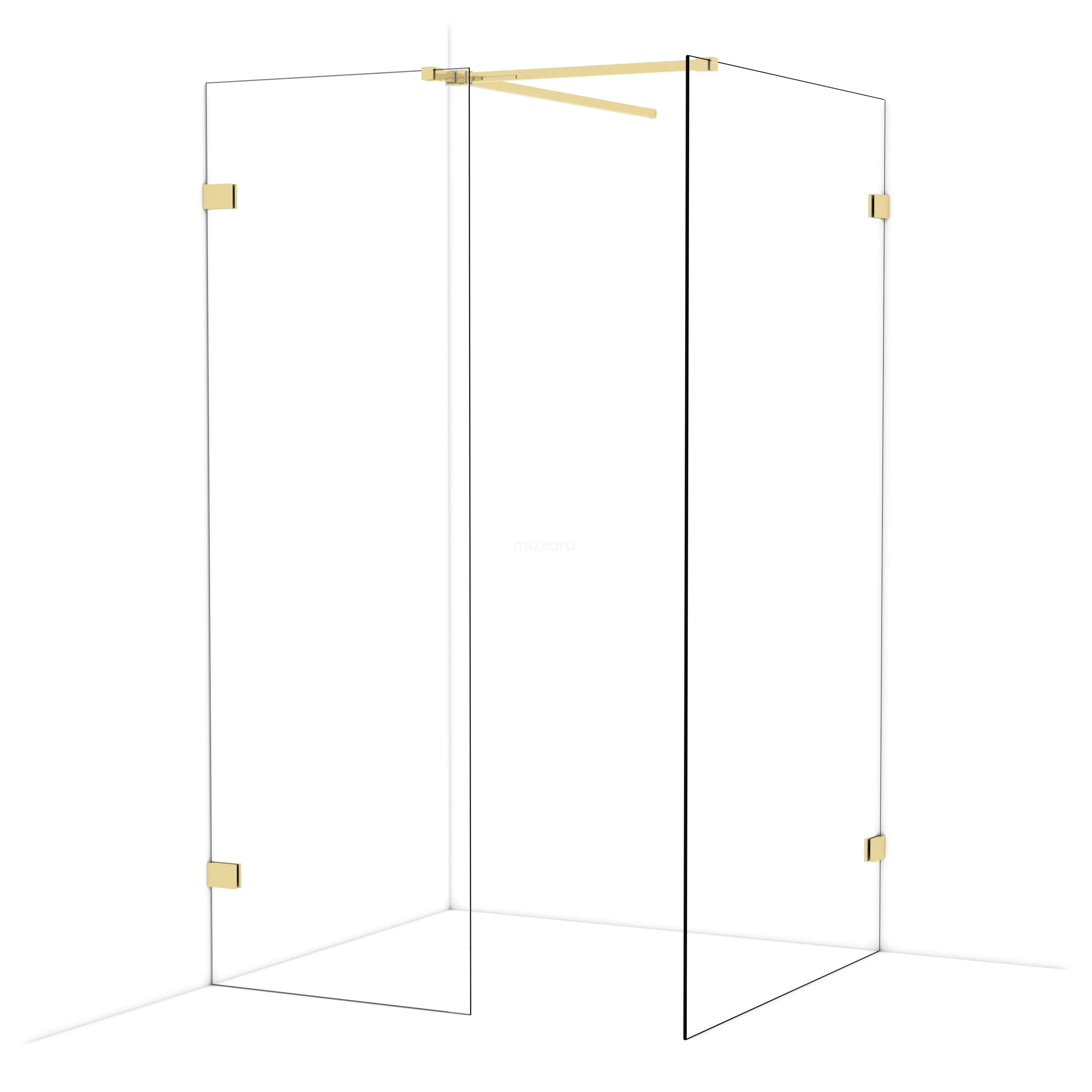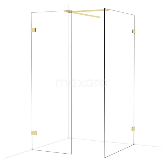Diamond begehbare Dusche | 110x70 cm Glänzendes Hellgold 2 feste Wände