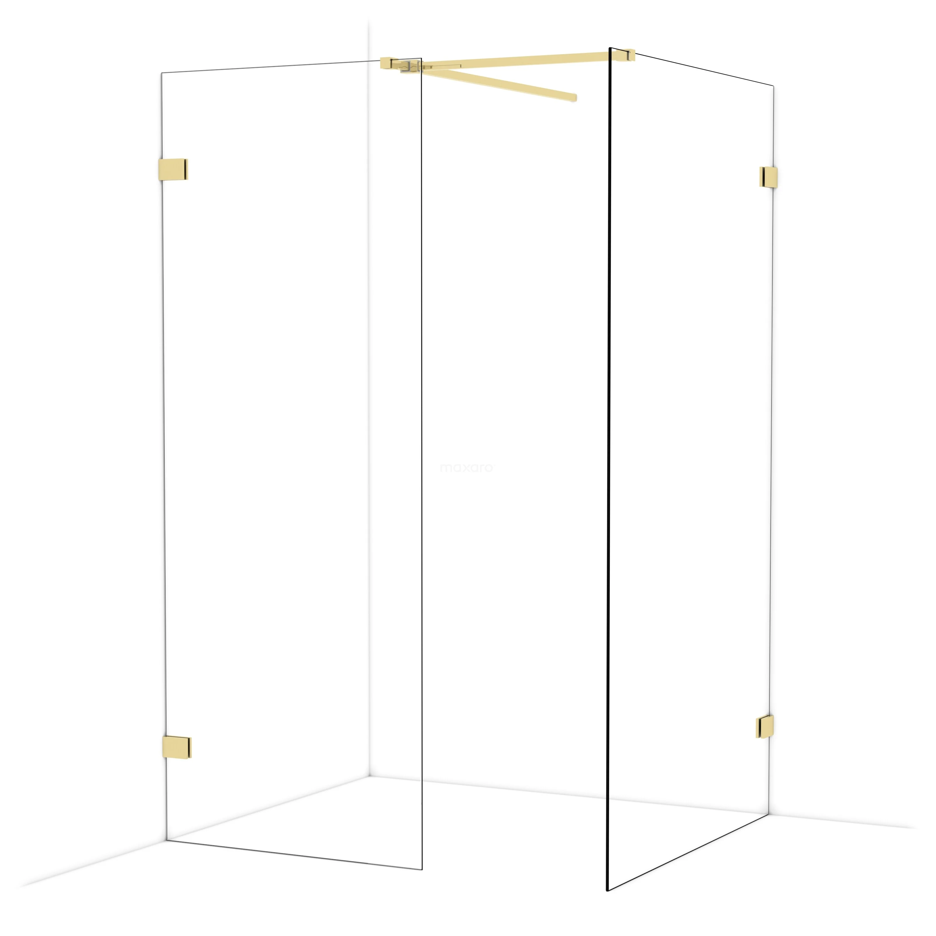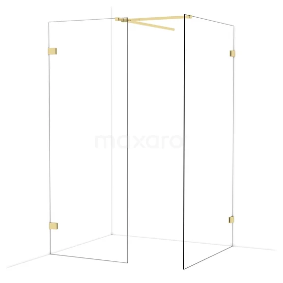 Diamond begehbare Dusche | 110x80 cm Glänzendes Hellgold 2 feste Wände