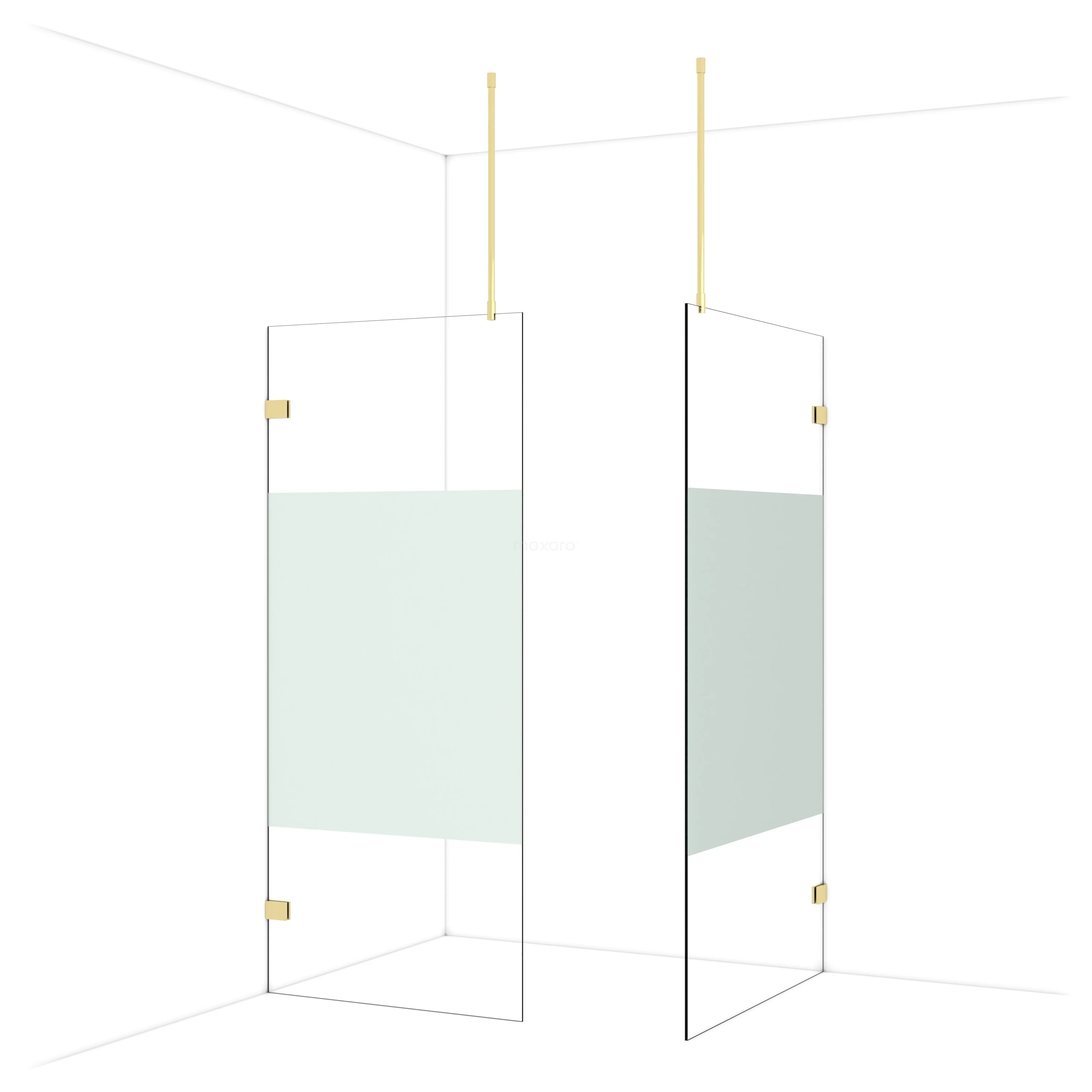 In der stilvollen begehbaren Dusche Diamond mit den Maßen 110x90 cm können Sie jeden Tag herrliche Duschsitzungen genießen. Sie hat ein raffiniertes und luxuriöses Design in glänzendem Hellgold und verfügt über Klarglas mit mattem Streifen für mehr Privatsphäre.
