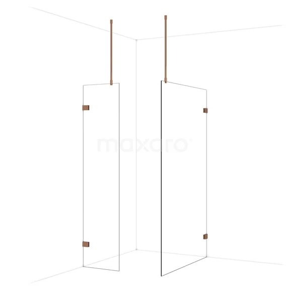 Diamond begehbare Dusche | 120x50 cm Glänzendes Kupfer 2 feste Wände