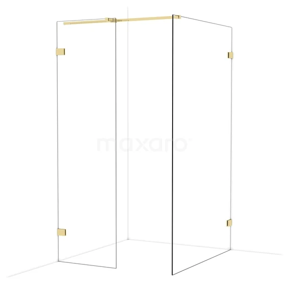 Diamond begehbare Dusche | 120x60 cm Glänzendes Hellgold 2 feste Wände