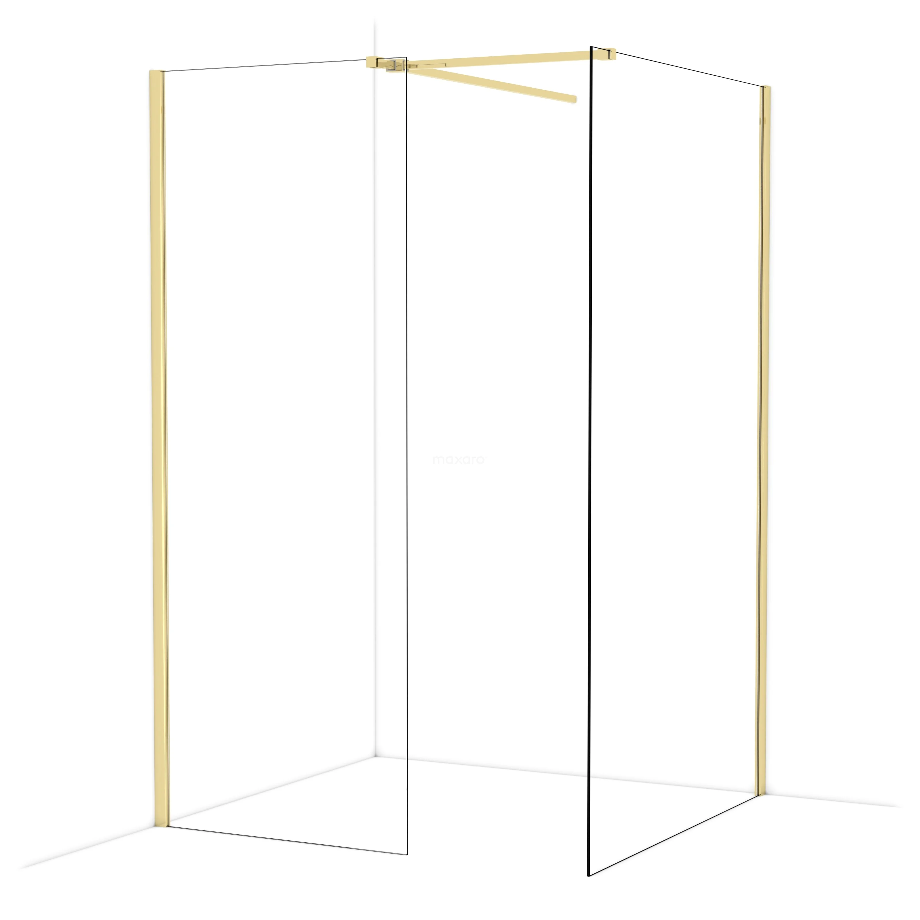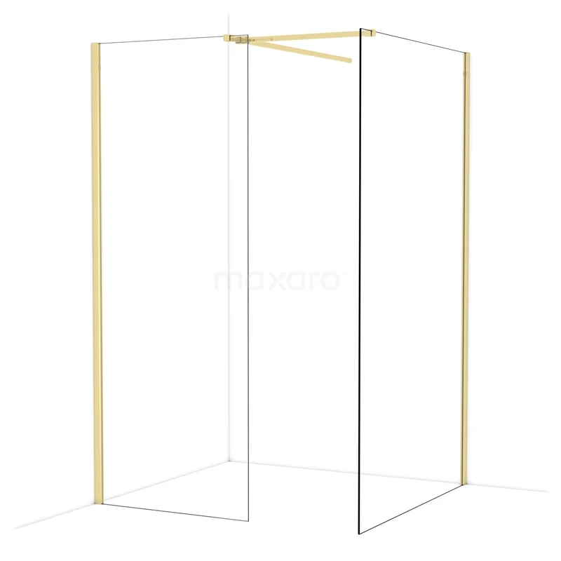 Diamond begehbare Dusche | 120x80 cm Glänzendes Hellgold 2 feste Wände