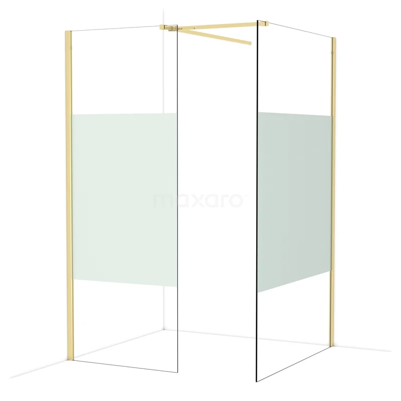 In der stilvollen begehbaren Dusche Diamond mit den Maßen 120x80 cm können Sie jeden Tag herrliche Duschsitzungen genießen. Sie hat ein raffiniertes und luxuriöses Design in glänzendem Hellgold und verfügt über Klarglas mit mattem Streifen für mehr Privatsphäre.