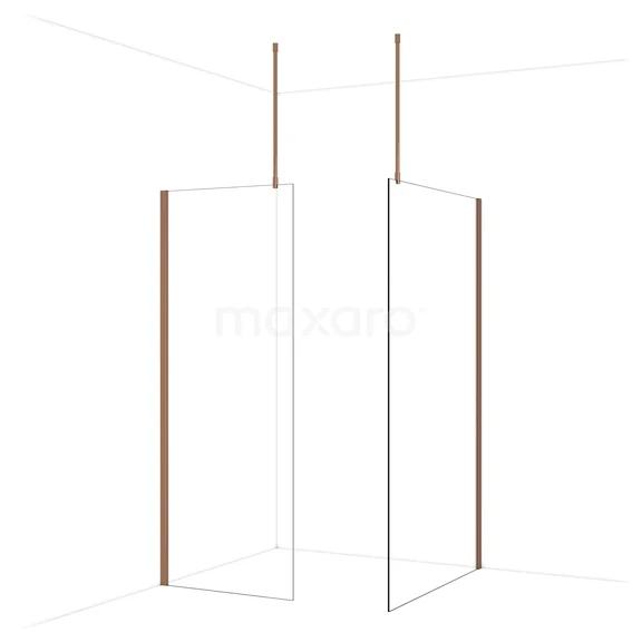 Diamond begehbare Dusche | 120x80 cm Glänzendes Kupfer 2 feste Wände