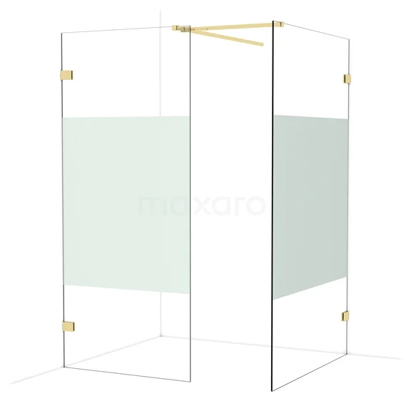 In der stilvollen begehbaren Dusche Diamond mit den Maßen 120x90 cm können Sie jeden Tag herrliche Duschsitzungen genießen. Sie hat ein raffiniertes und luxuriöses Design in glänzendem Hellgold und verfügt über Klarglas mit mattem Streifen für mehr Privatsphäre.
