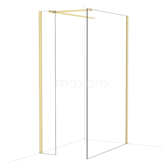 Diamond begehbare Dusche | 130x30 cm Glänzendes Hellgold 2 feste Wände
