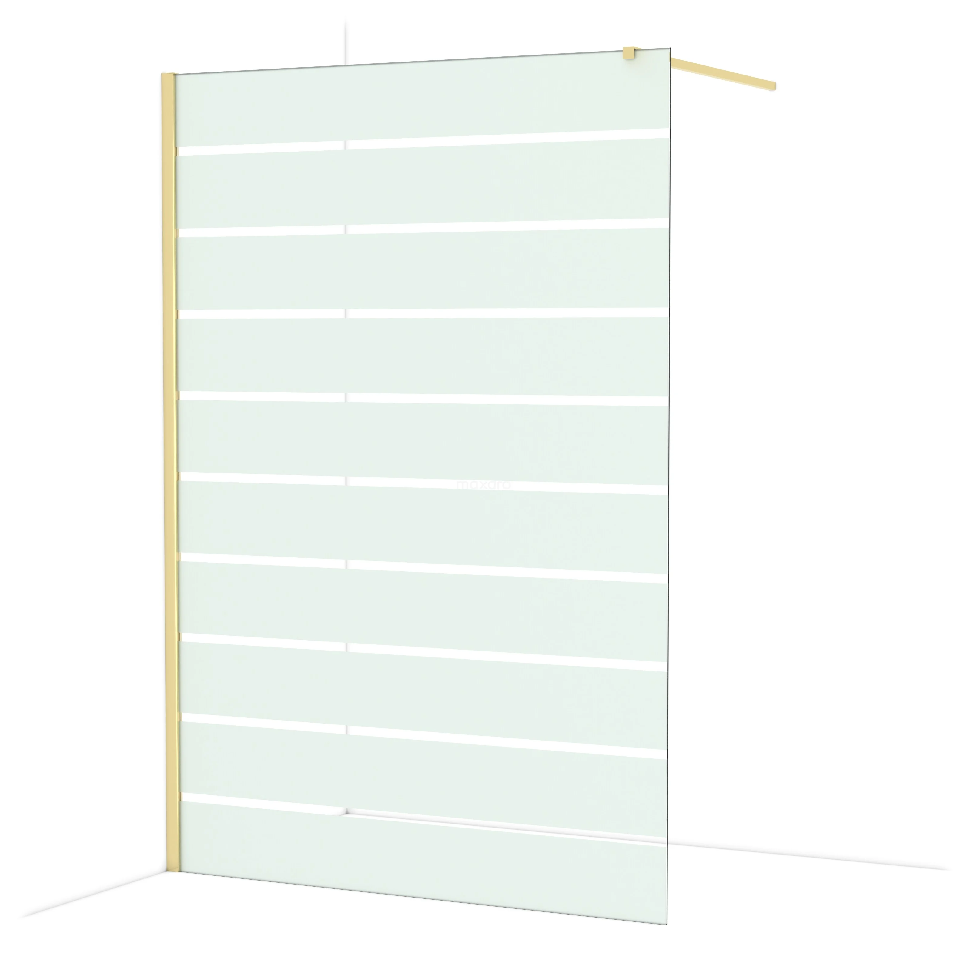 In der stilvollen begehbaren Dusche Diamond mit einer Größe von 140 cm können Sie jeden Tag herrliche Duschsitzungen genießen. Sie hat ein raffiniertes und luxuriöses Design in glänzendem Hellgold und verfügt über Klarglas mit matten Streifen für mehr Privatsphäre.