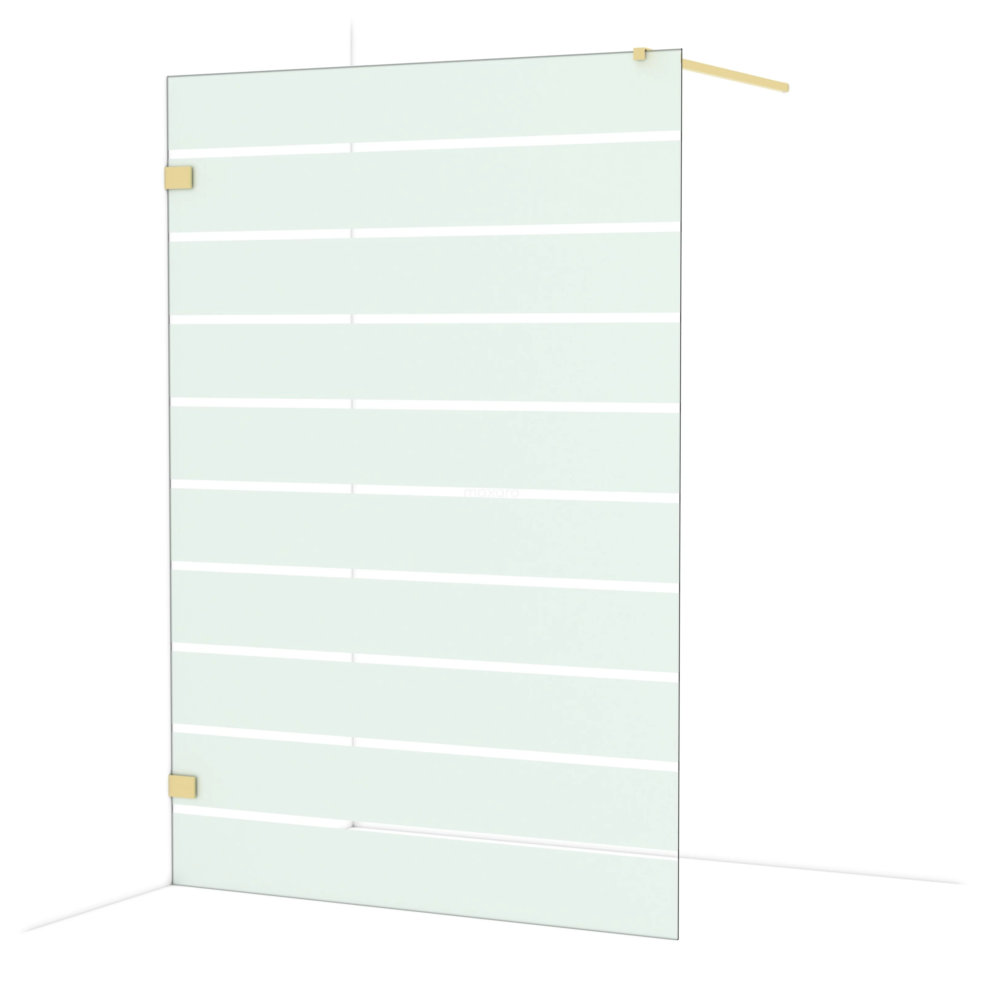 In der stilvollen begehbaren Dusche Diamond mit einer Größe von 140 cm können Sie jeden Tag herrliche Duschsitzungen genießen. Sie hat ein raffiniertes und luxuriöses Design in glänzendem Hellgold und verfügt über Klarglas mit matten Streifen für mehr Privatsphäre.