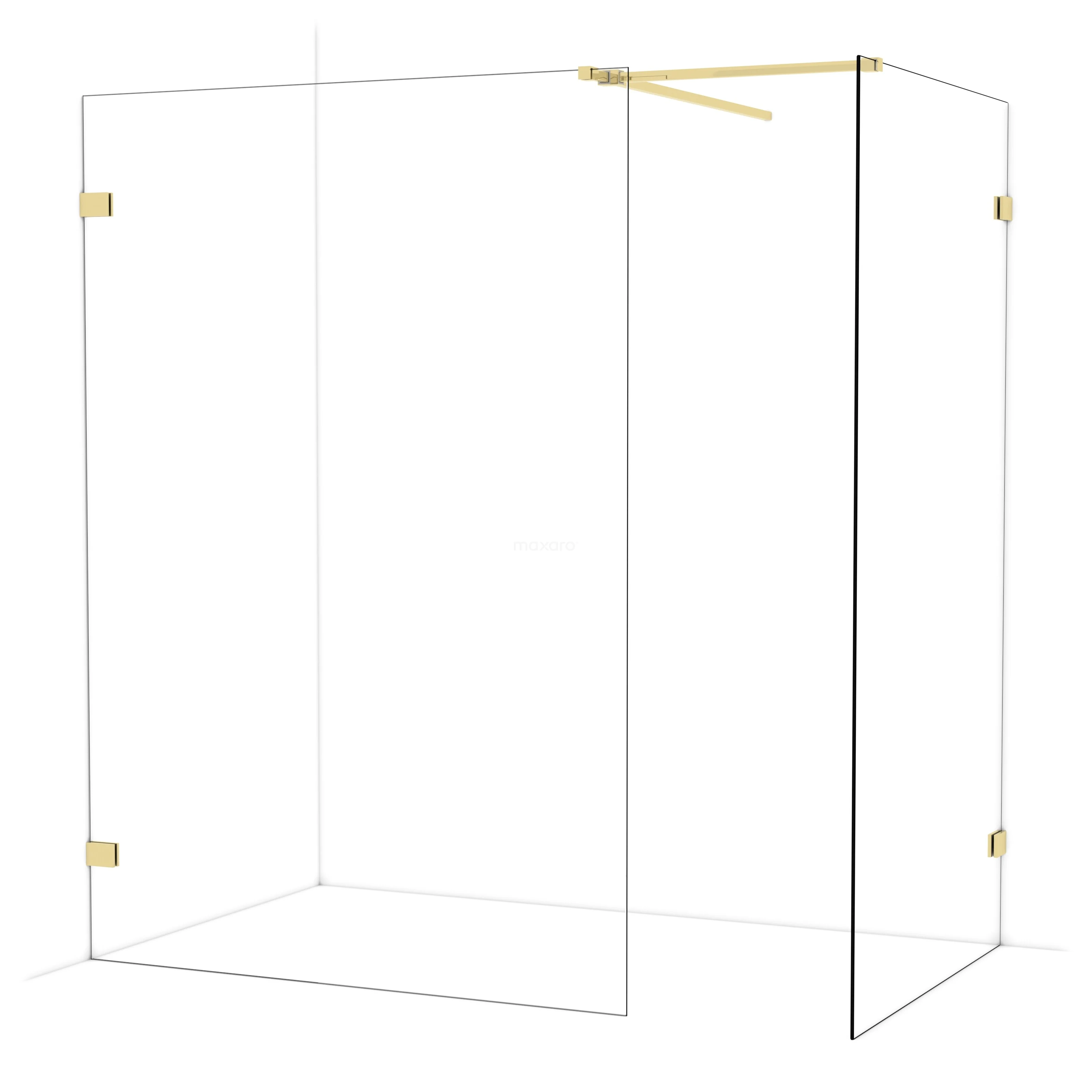 Diamond begehbare Dusche | 140x110 cm Glänzendes Hellgold 2 feste Wände