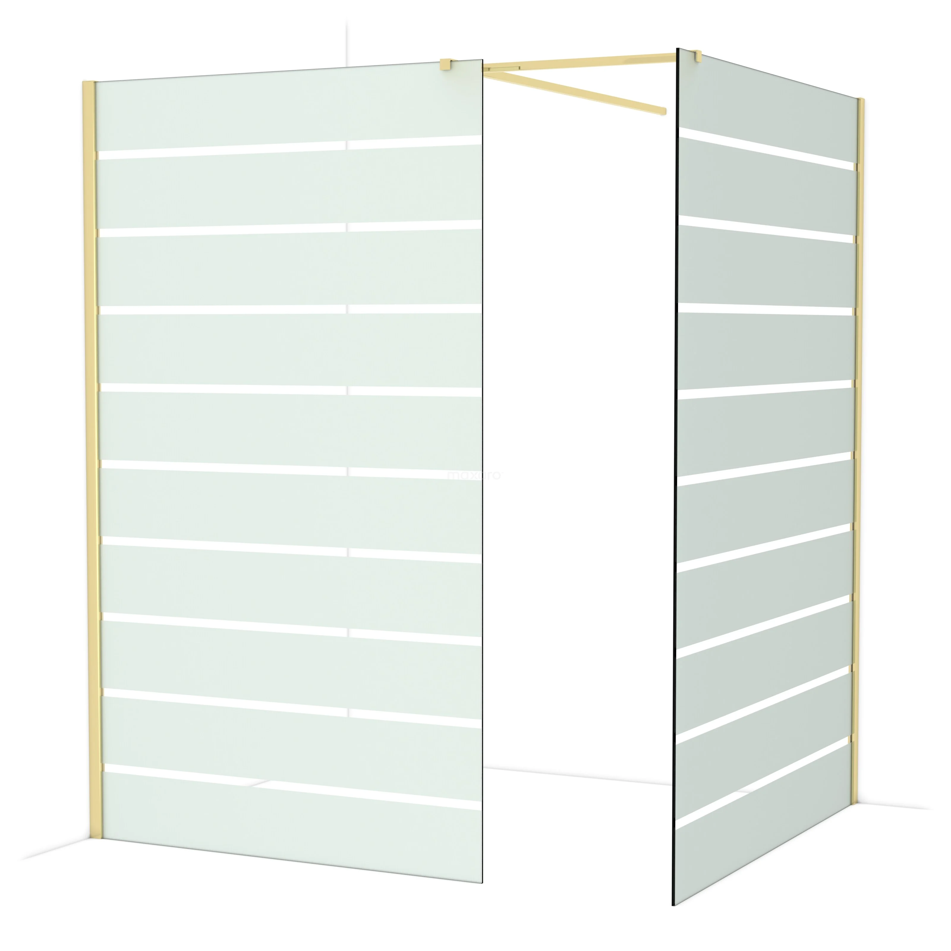 Diamond begehbare Dusche | 140x120 cm Glänzendes Hellgold 2 feste Wände