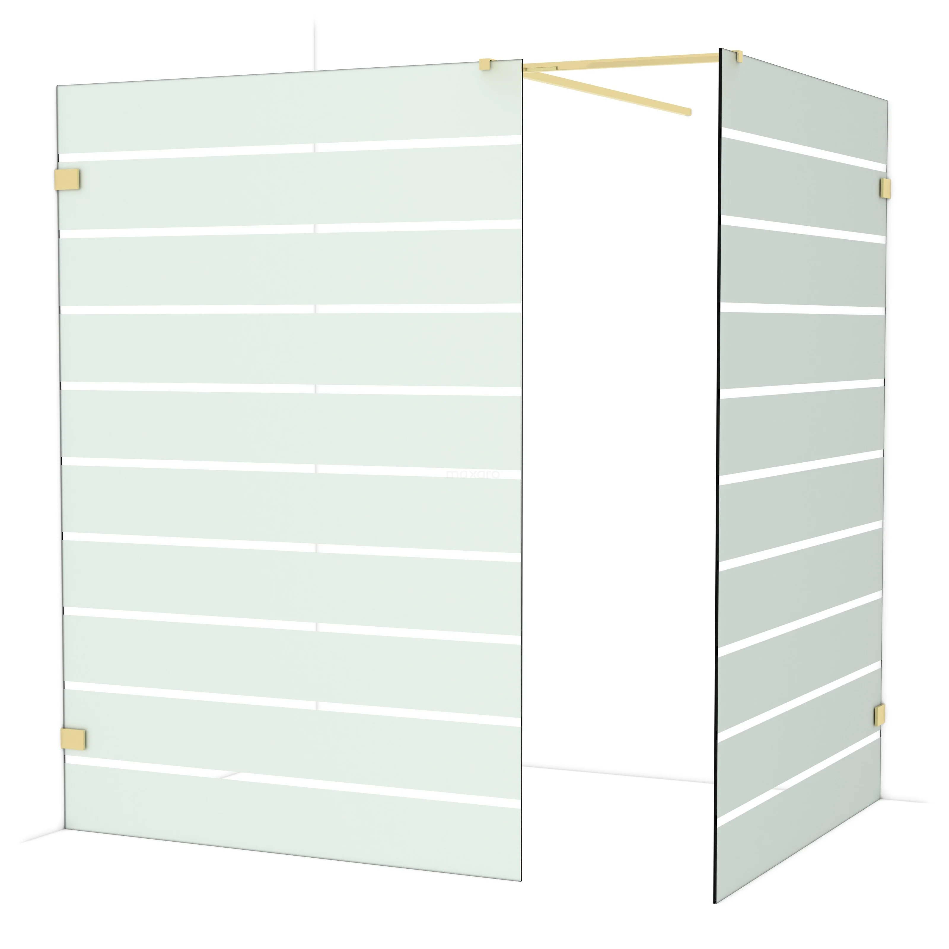 Diamond begehbare Dusche | 140x140 cm Glänzendes Hellgold 2 feste Wände