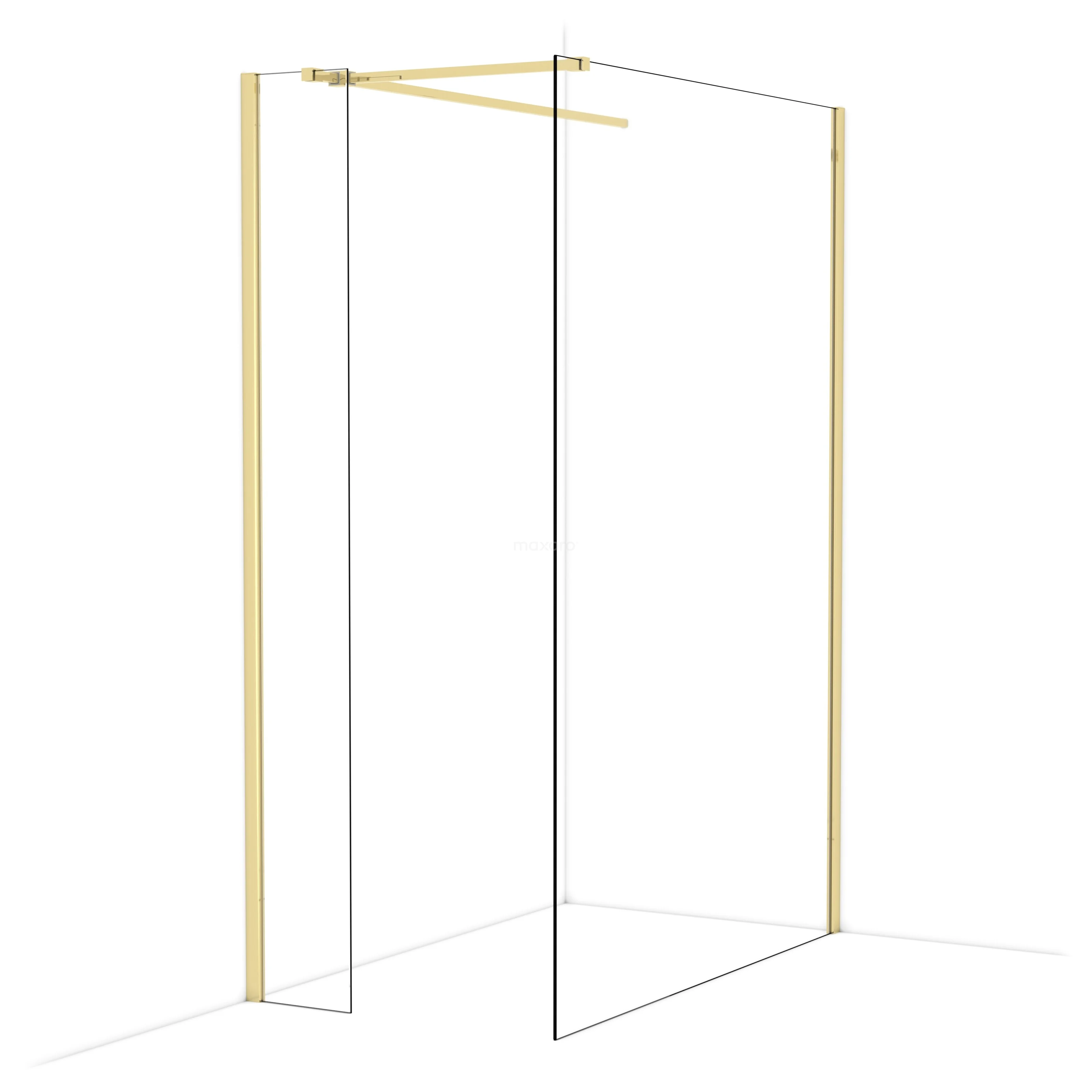 Diamond begehbare Dusche | 140x30 cm Glänzendes Hellgold 2 feste Wände